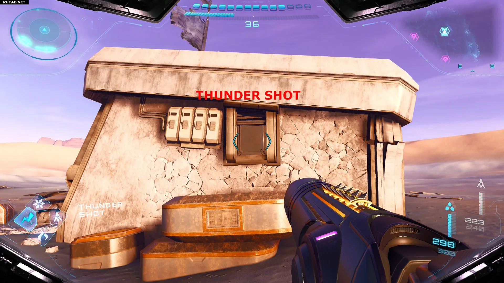 Направляйтесь на участок обломков Г.Ф. в южной части карты. Поразите металлическую шторку на здании громовым выстрелом и используйте открывшийся туннель для Морф-шара, чтобы получить доступ к расширению для ракет.