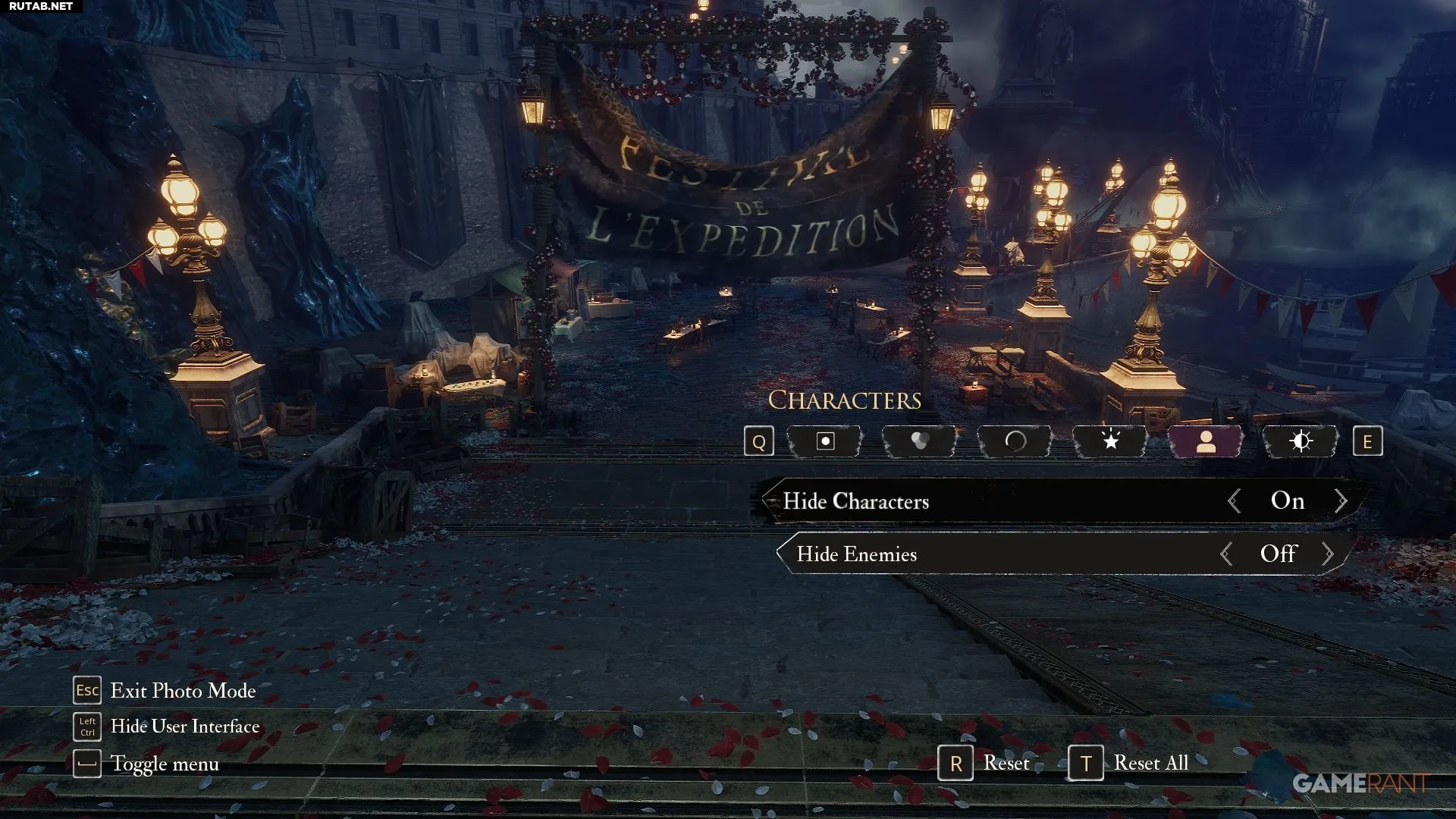 При необходимости можно скрыть персонажей и врагов, если нужно сфотографировать только окружение.