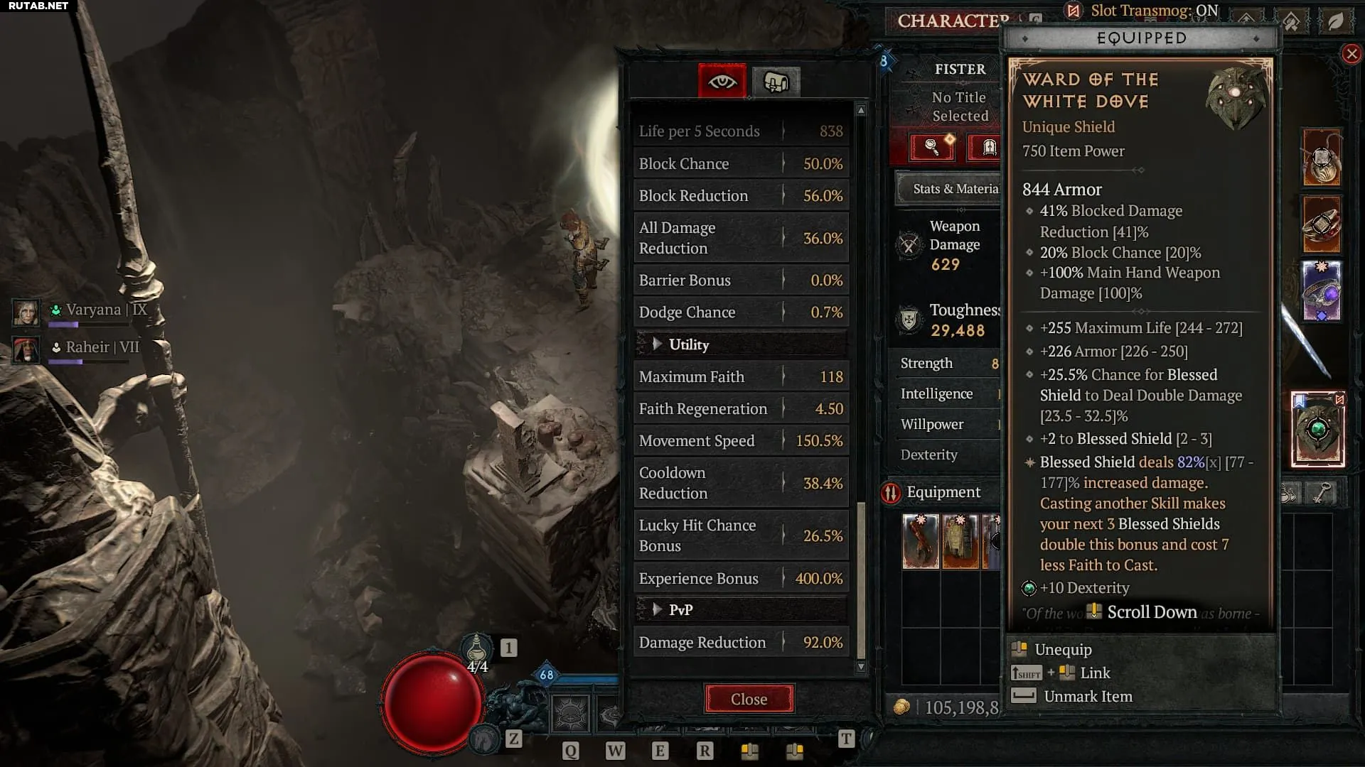 | Щит | Оберег белого голубя — «Благословенный щит» наносит (x%) увеличенный урон. Использование другого навыка удваивает этот бонус для следующих 3 применений «Благословенного щита» и снижает стоимость Веры на 7. | Максимальное здоровье Броня Шанс нанести двойной урон «Благословенным щитом» +2 к «Благословенному щиту» |
