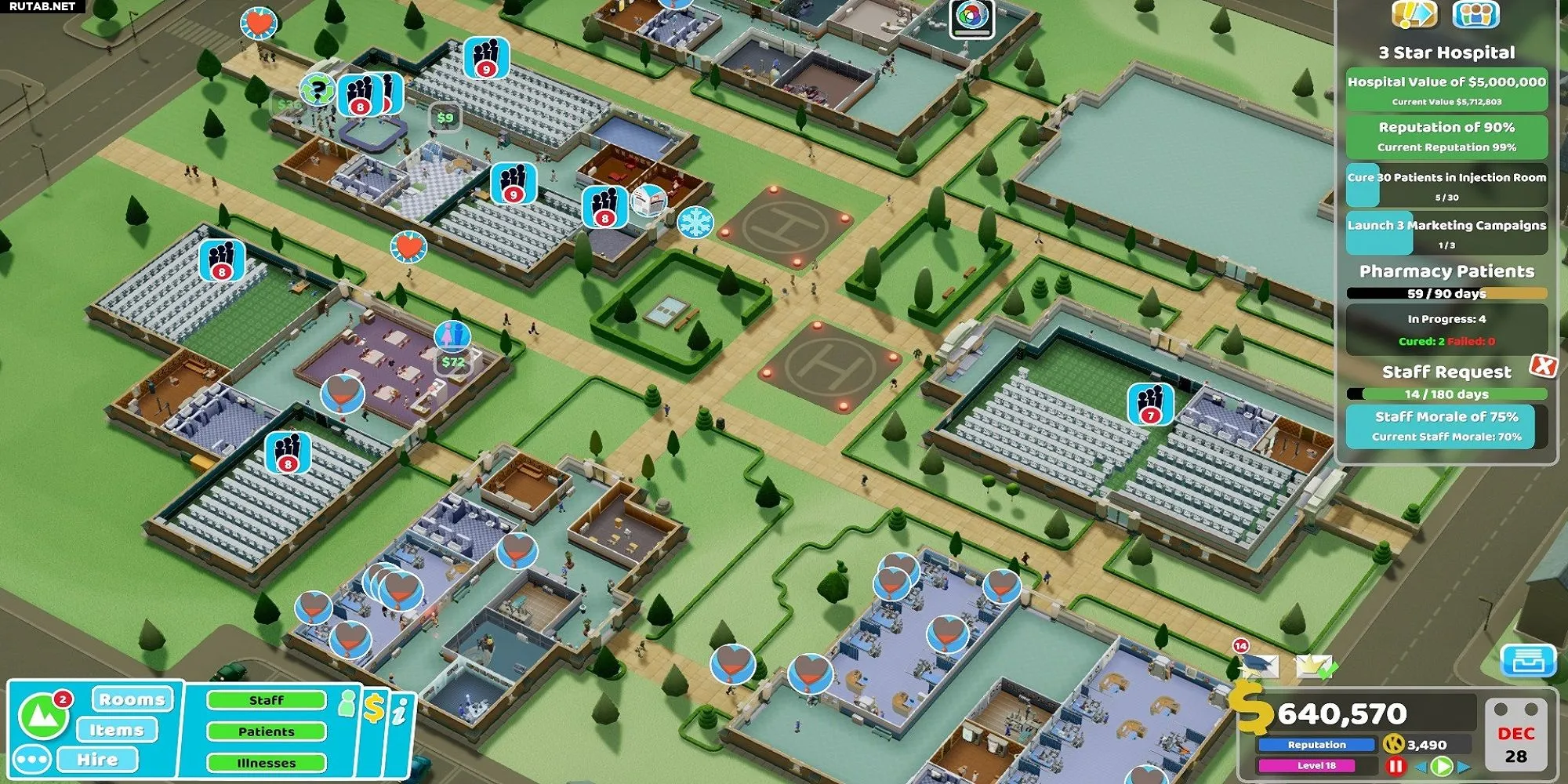 Two Point Hospital — это игра, в которой вы можете спроектировать собственную больницу. Вам предстоит диагностировать странные болезни и управлять персоналом, создавая целую сеть медицинских учреждений.