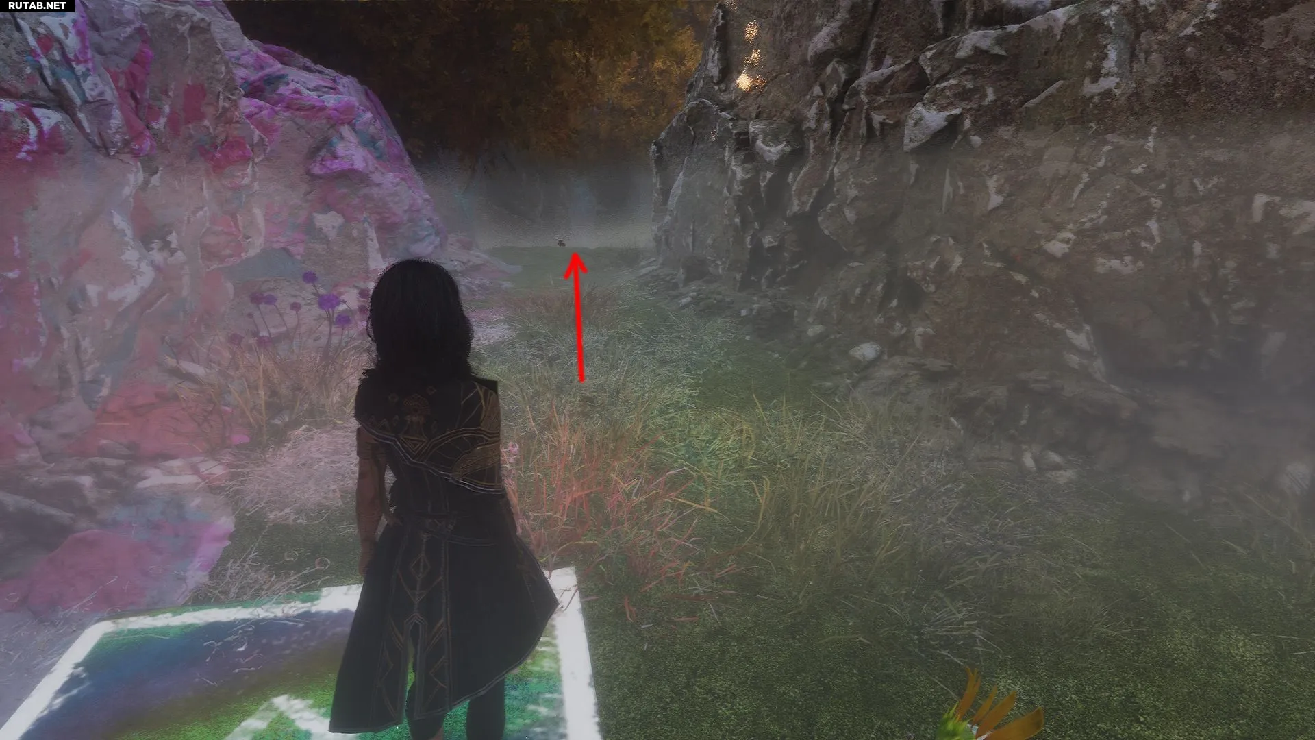 Шестая плитка — спуститесь с уступа и обойдите деревья слева или справа.