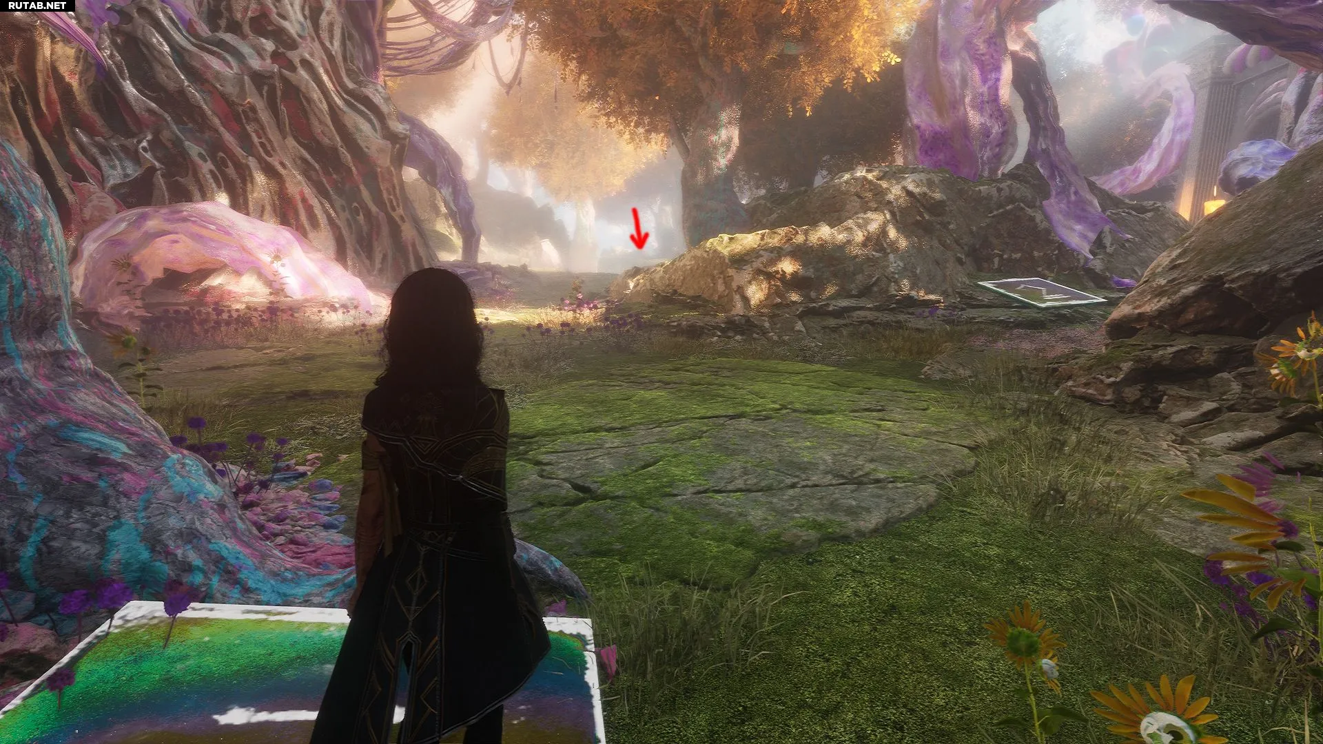 Седьмая плитка — пройдите под ветвями фиолетового дерева и загляните за жёлтое дерево справа.