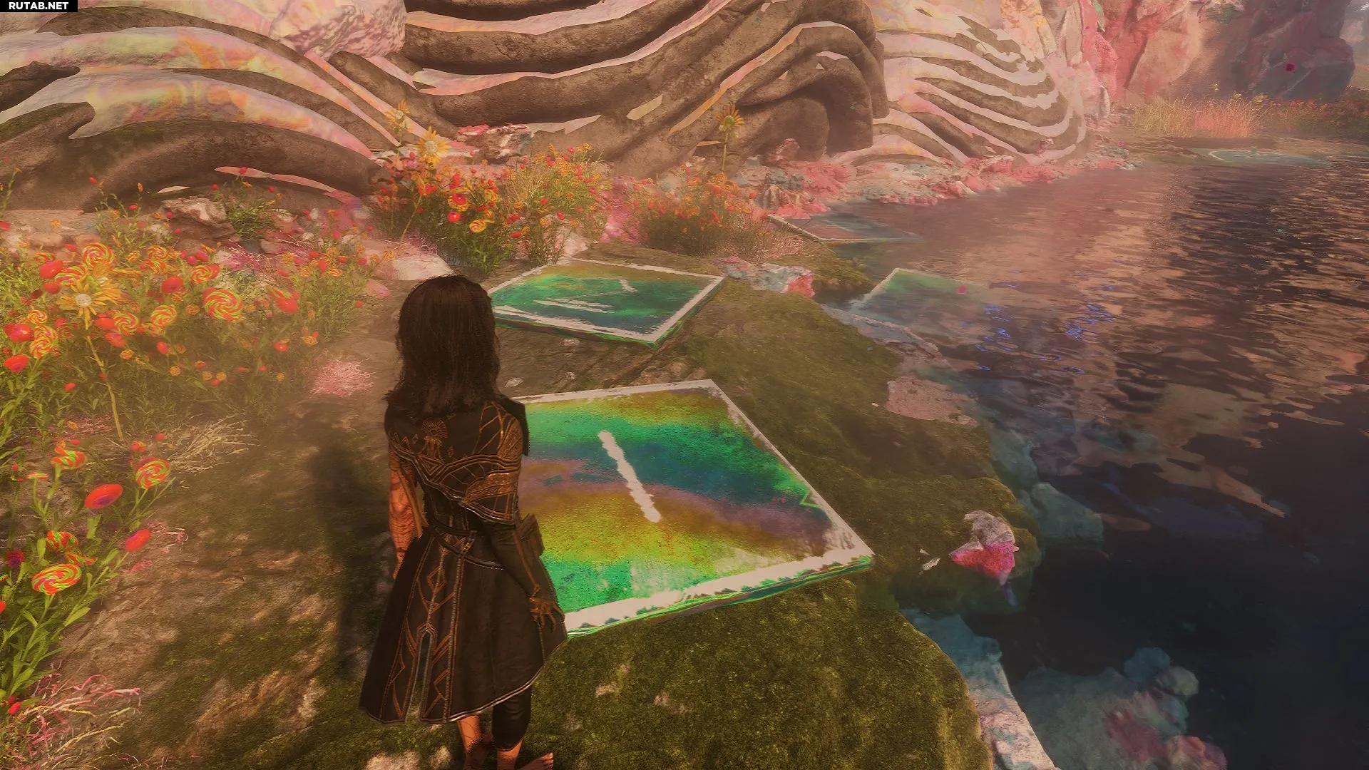 Некоторые плитки скрыты под водой, поэтому наступать нужно аккуратно.