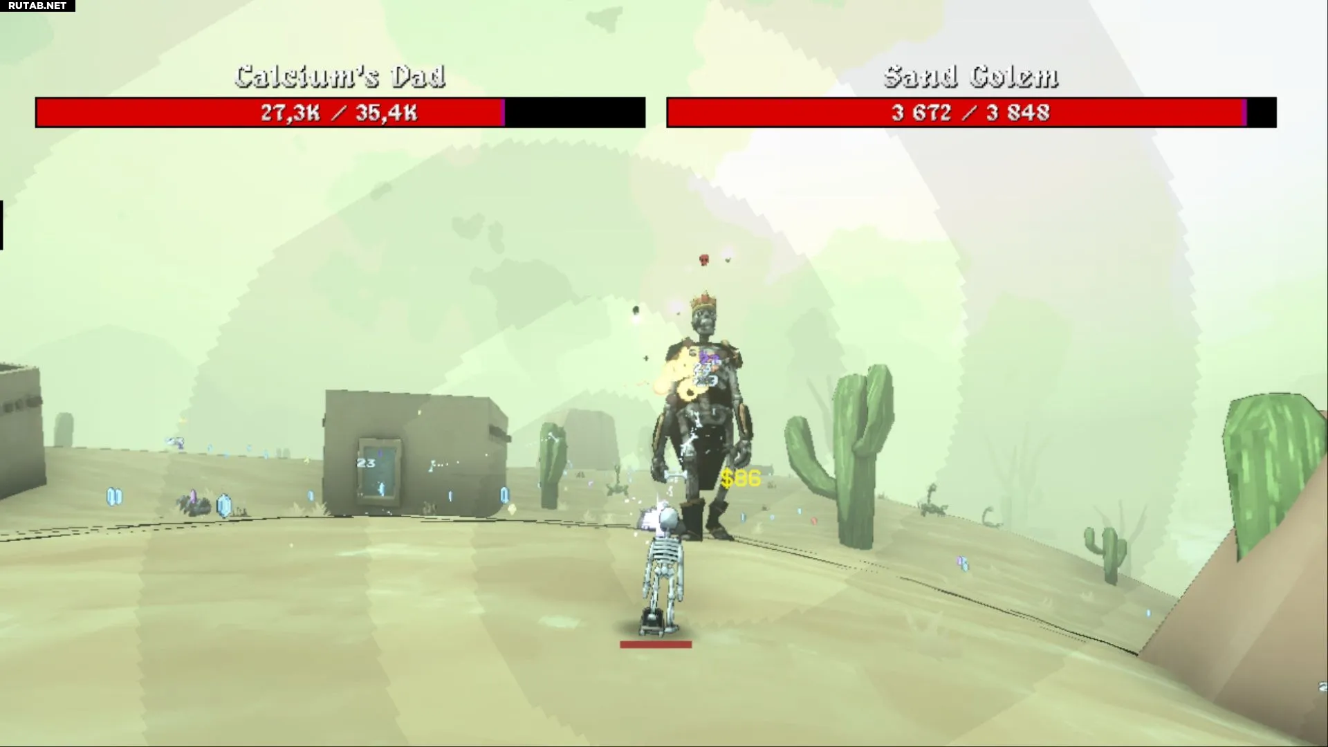 После победы над призраками на карте появится золотая статуя, изображающая могучего скелета — Папу Кальция (Calcium's Dad). Если вы не повышали сложность (Difficulty) во время забега, у босса на первом уровне карты будет около 35.4 тыс. здоровья.