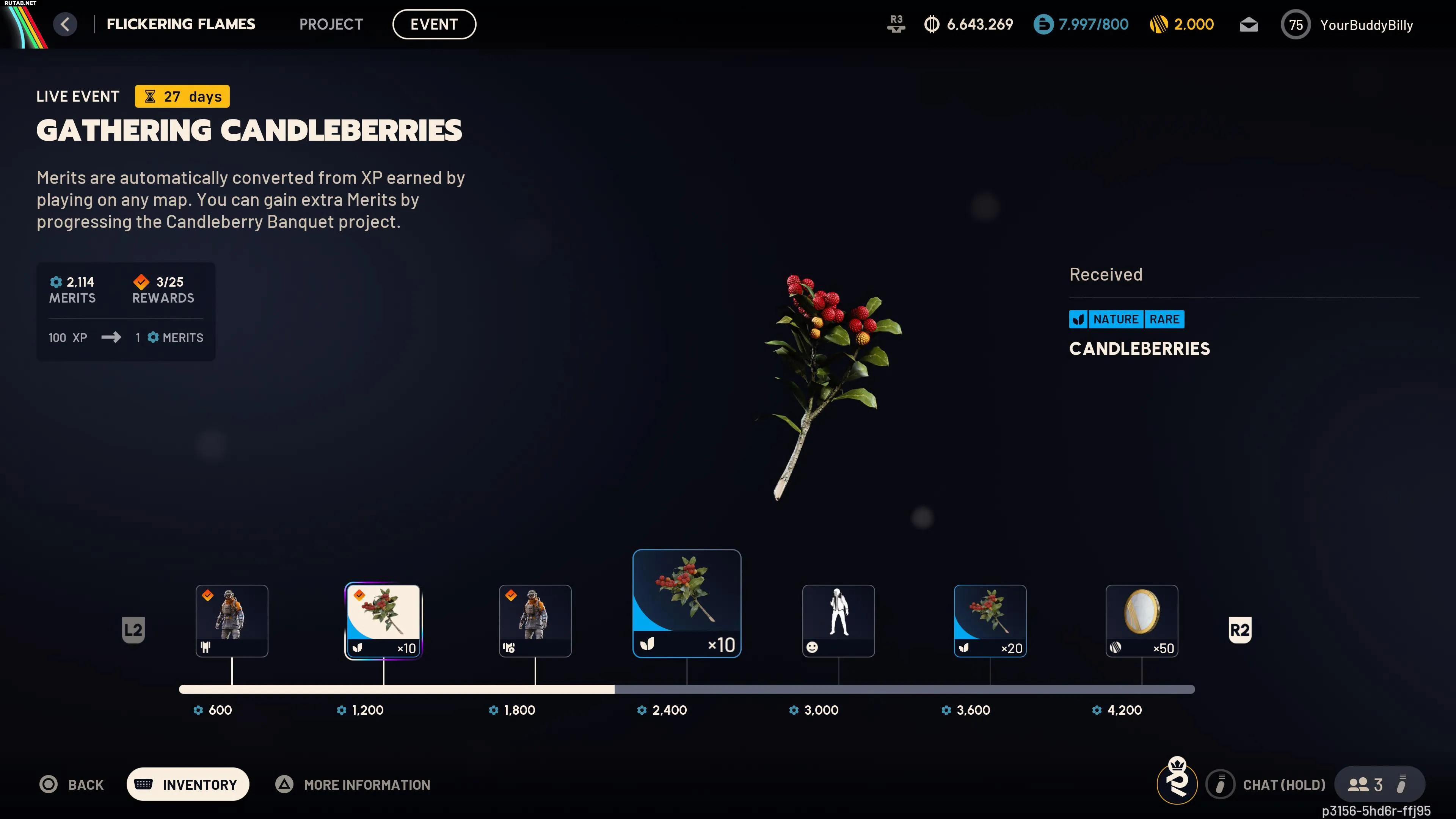 Большое количество свечных ягод вы получите автоматически, участвуя в событии «Сбор свечных ягод». Всего за прохождение трека наград можно получить 180 ягод. Прогресс в событии растет по мере получения опыта (который конвертируется в Заслуги).