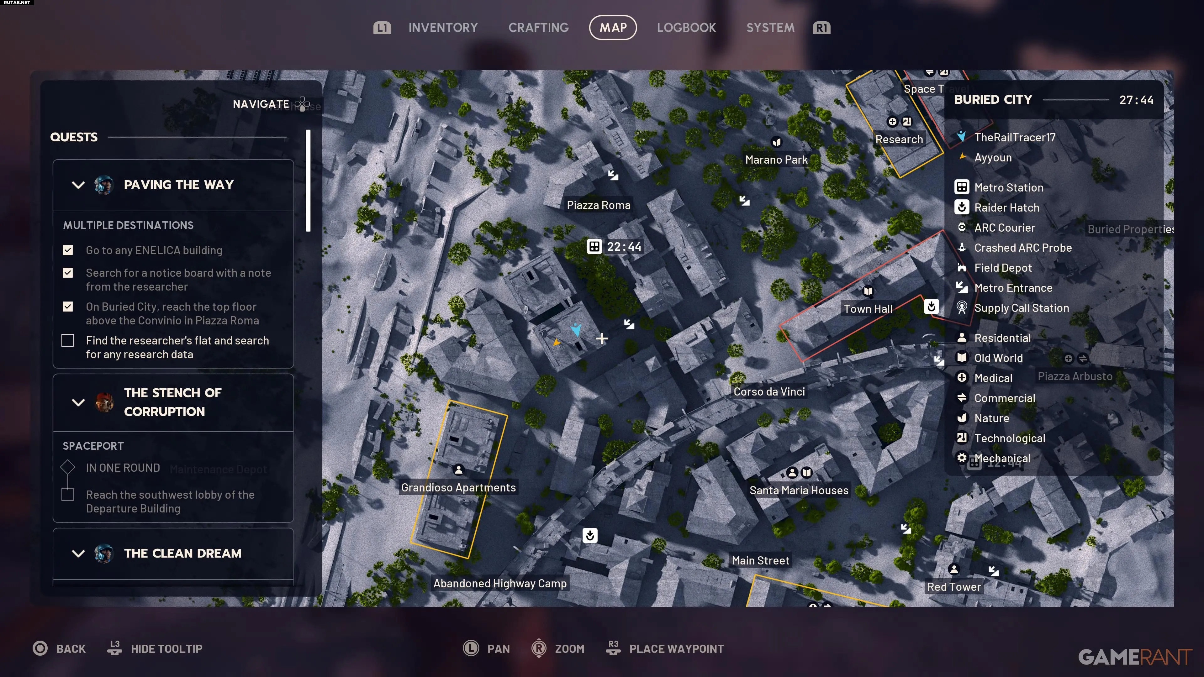 Для второй части квеста загрузитесь на карту «Захороненный город». Отметьте на карте здания Пьяцца Рома и направляйтесь к большому зданию к западу от входа на станцию метро. Будьте осторожны: по пути вас могут атаковать Огненные шары и Хлопушки, особенно при использовании зиплайнов, ведущих на самый верх.