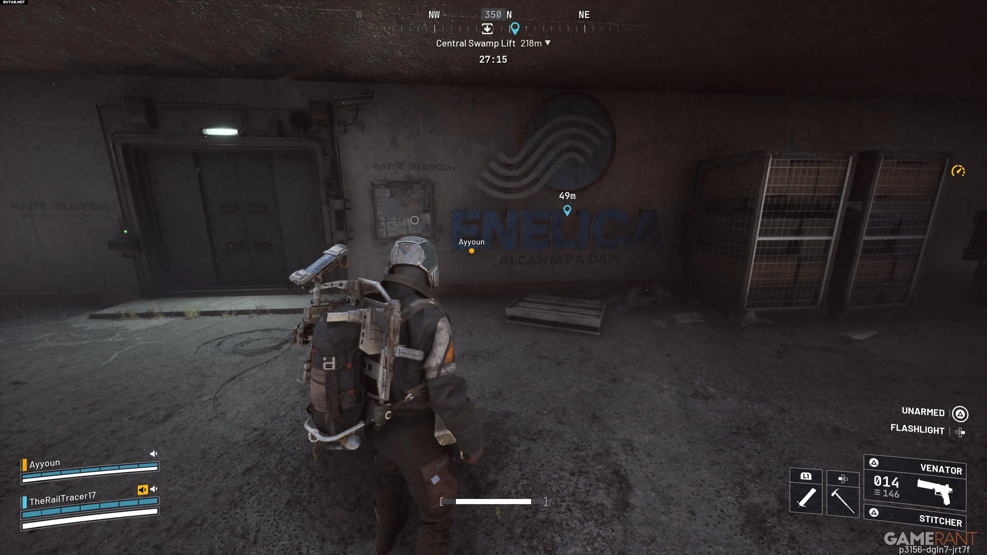 Подойдите к фасаду здания, где видна надпись «ENELICA». Рядом с ней будет доска, с которой можно взаимодействовать, чтобы завершить этап. После этого можно эвакуироваться через ближайший лифт водоподготовки.