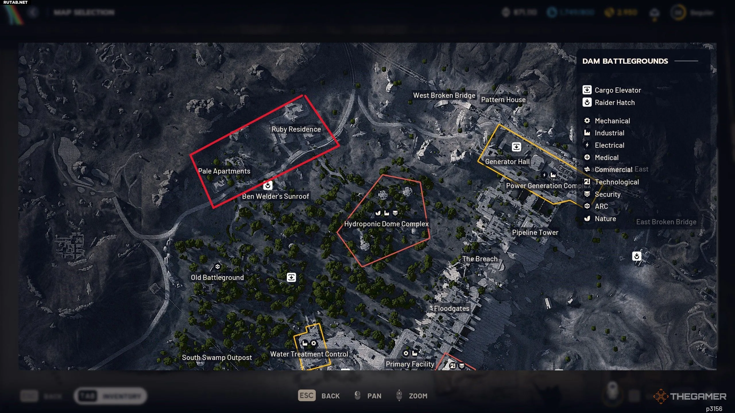Наконец, к северо-западу от Гидропонного комплекса стоит обратить внимание на Рубиновую резиденцию и Бледные апартаменты. Этот район представляет собой группу жилых зданий и является ещё одним неплохим местом для поиска ценных предметов, особенно обычных, так как зона не связана с повышенным уровнем добычи.