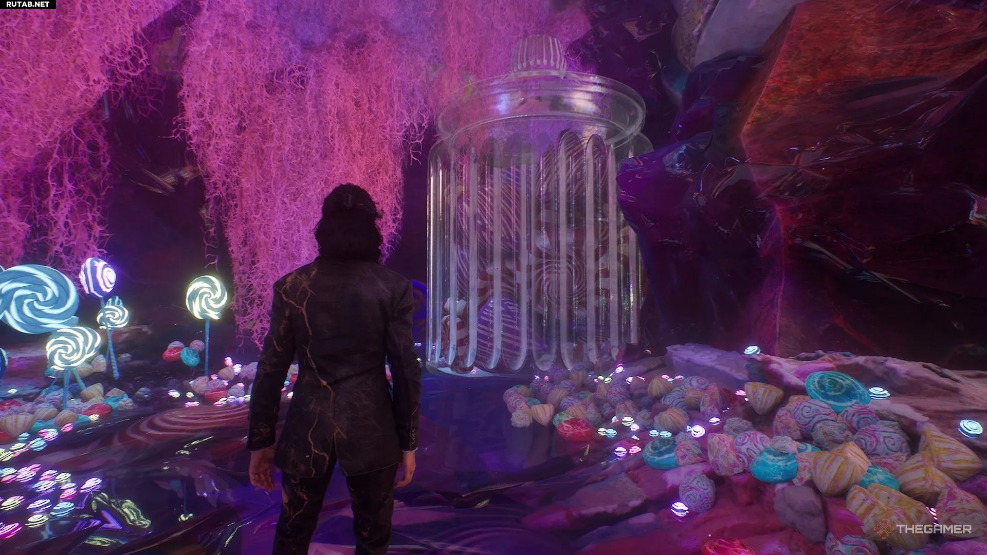 В одном углу этой зоны стоит жбан с конфетами. Разбейте его с помощью способности «Красочный взлом» (эта же кнопка используется для начала боя). Убрав жбан с дороги, вы сможете попасть в потайную зону, где и находятся классики.