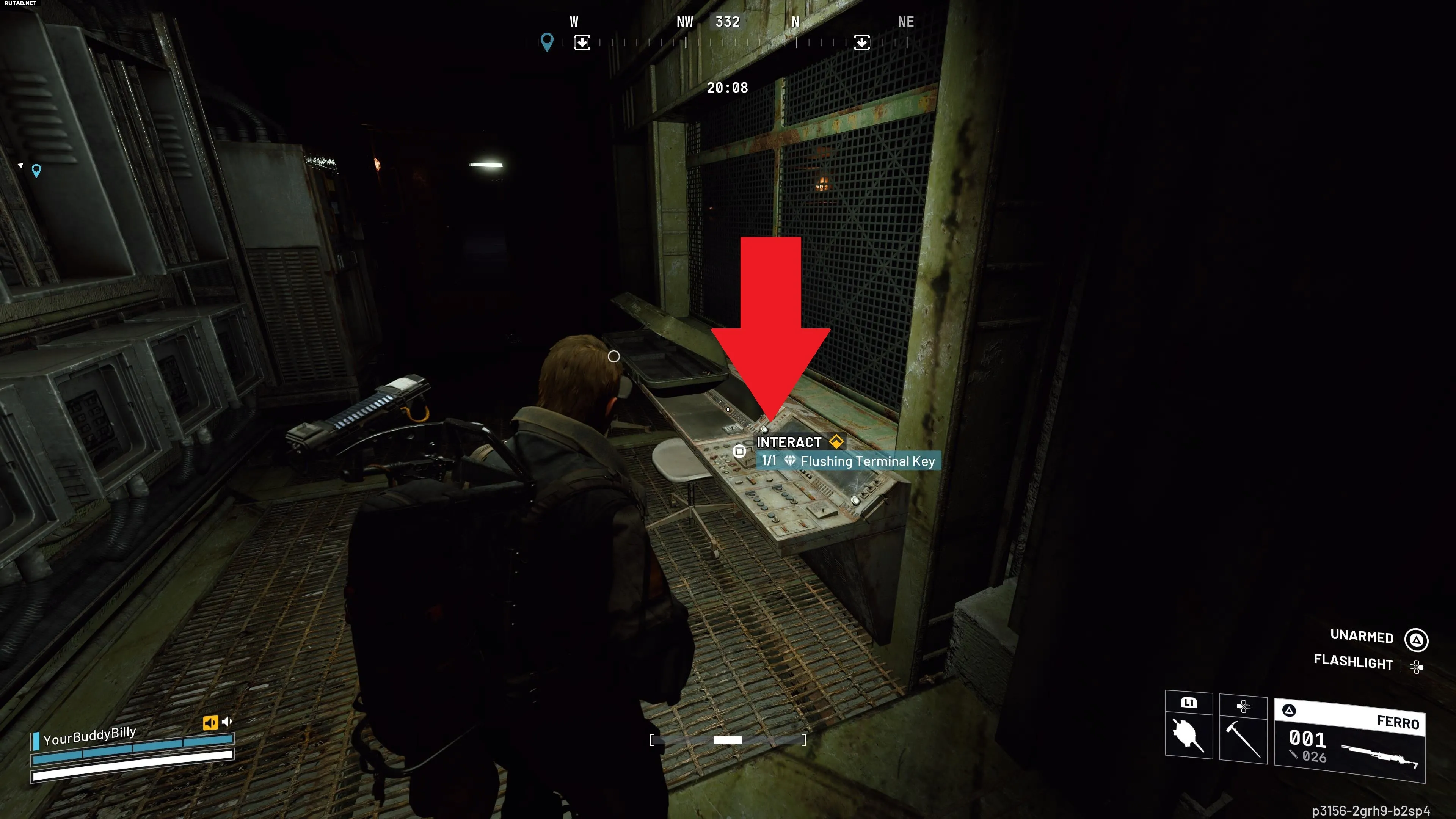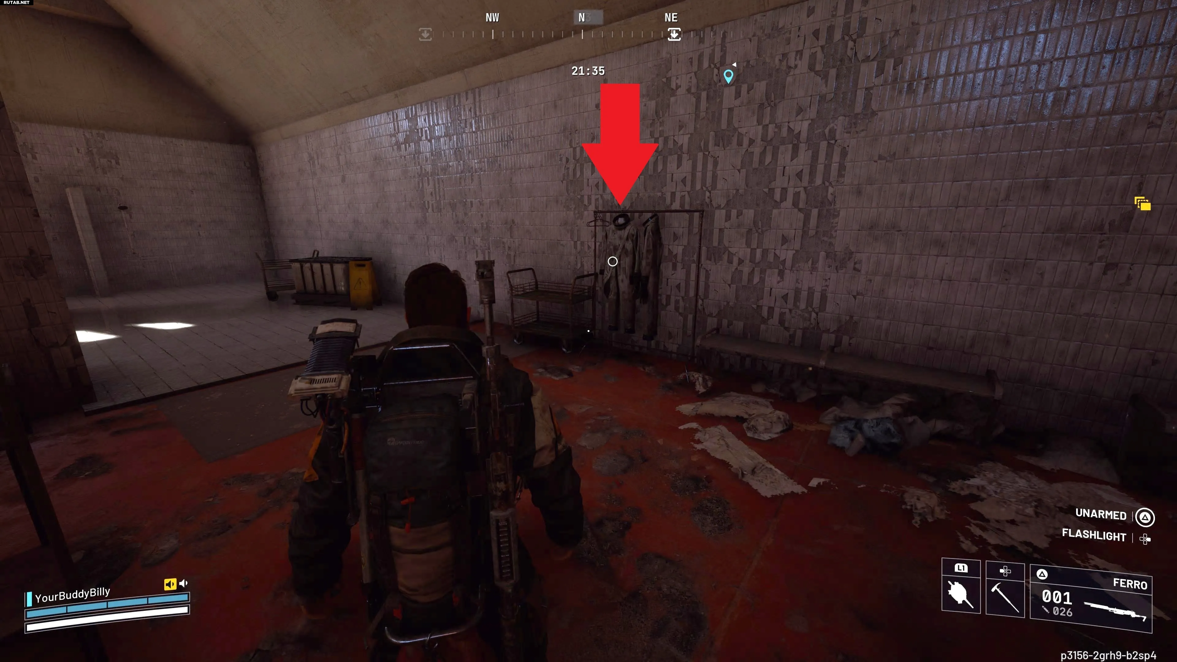 Осмотрите защитные костюмы в глубине комнаты и взаимодействуйте с ними, чтобы получить Ключ от сливного терминала. Обязательно подберите его.