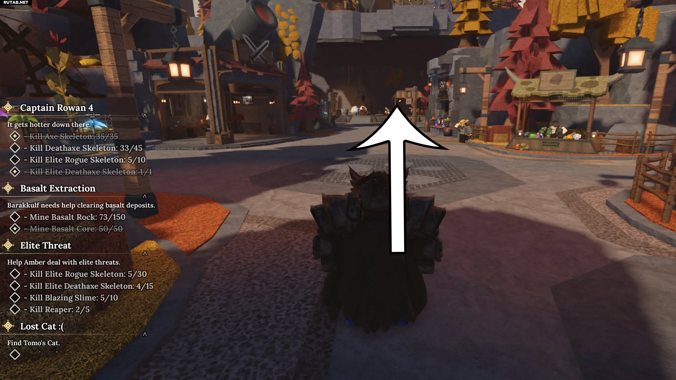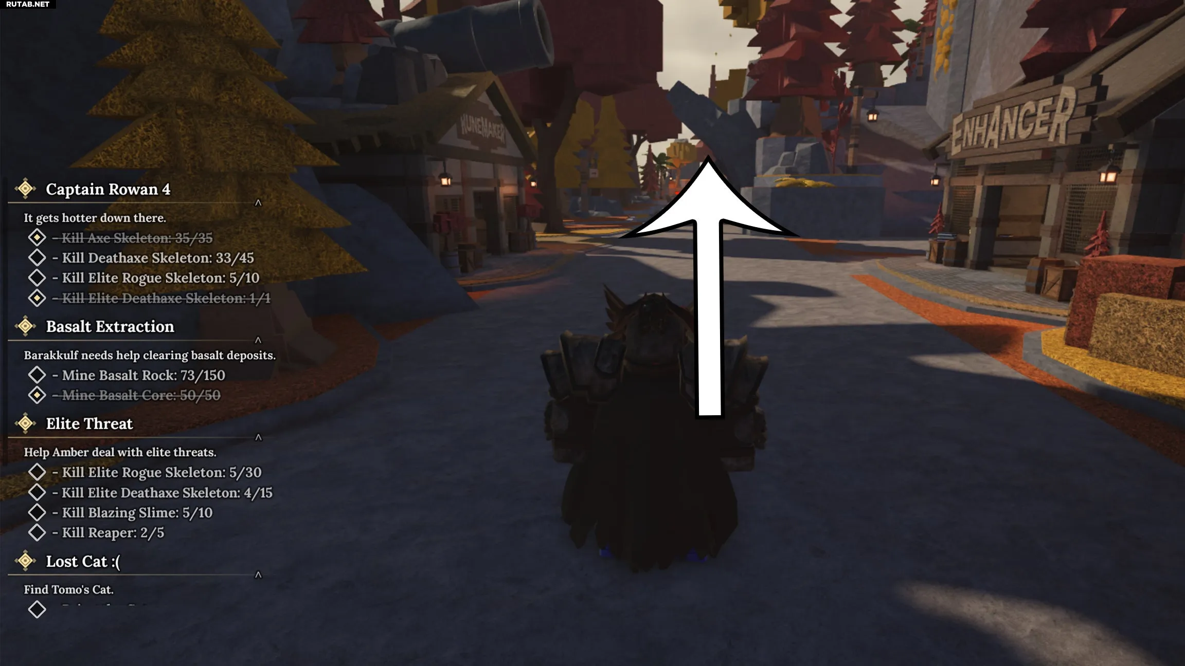 Оказавшись в Забытом Королевстве, вы найдёте Короля гоблинов недалеко от точки появления. Просто идите прямо мимо ларьков с кирками и зельями, а когда дойдёте до наковальни, поверните налево и пройдите мимо магазинов Улучшателя и Создателя рун.