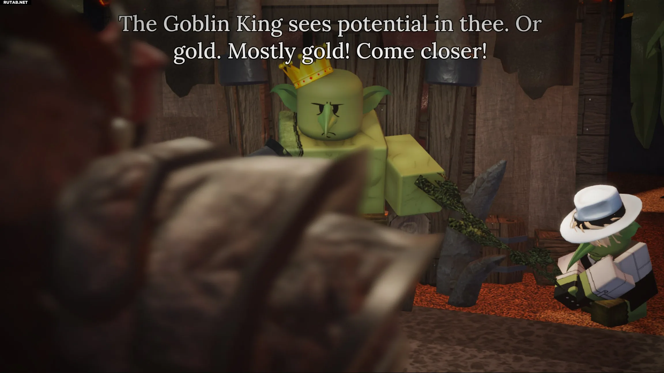 Справа вы увидите территорию, охраняемую двумя гоблинами. Пройдите мимо них, и вы найдёте Короля гоблинов, сидящего на троне. Поговорите с ним и согласитесь помочь, чтобы начать первый этап квеста.