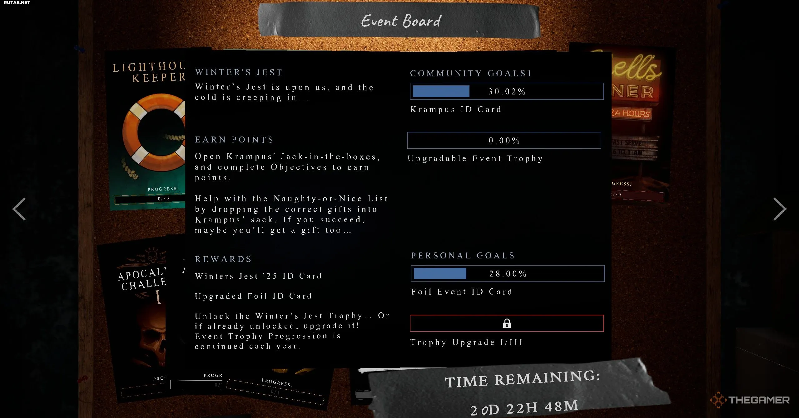 Очки события — это валюта, которая определяет прогресс в «Зимней шутке». Вы зарабатываете их за правильное определение типа призрака, выполнение дополнительных заданий, взаимодействие с Прыгунами-с-пружинкой, доставку Подарков Крампуса и игру на более высоких уровнях сложности.