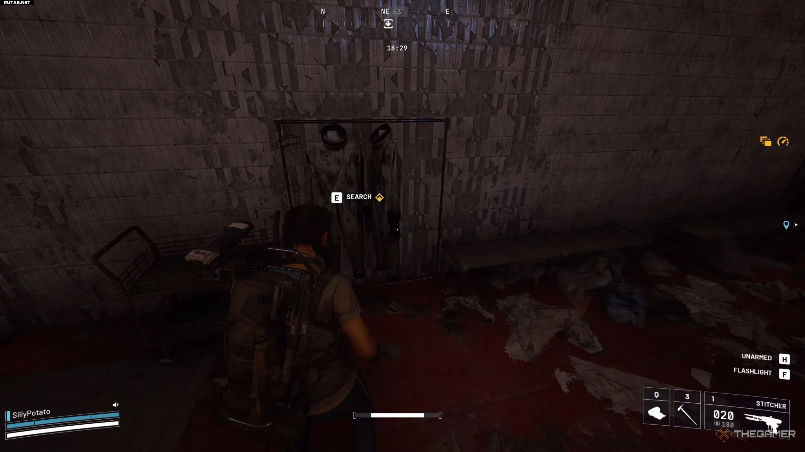 Спуститесь по лестнице в Комнате персонала, пройдите прямо и найдите второй стеллаж с одеждой справа. Взаимодействуйте с ним, чтобы выполнить первую часть задания. Обязательно подберите ключ, который выпадет рядом — он понадобится далее.