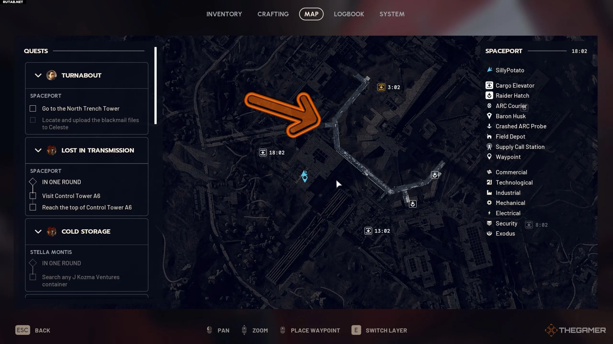 Следующий этап проходит в туннелях под Космопортом. Чтобы увидеть их на карте, переключите слой. Удобный вход расположен чуть выше Здания вылета, где туннели немного выходят на поверхность.