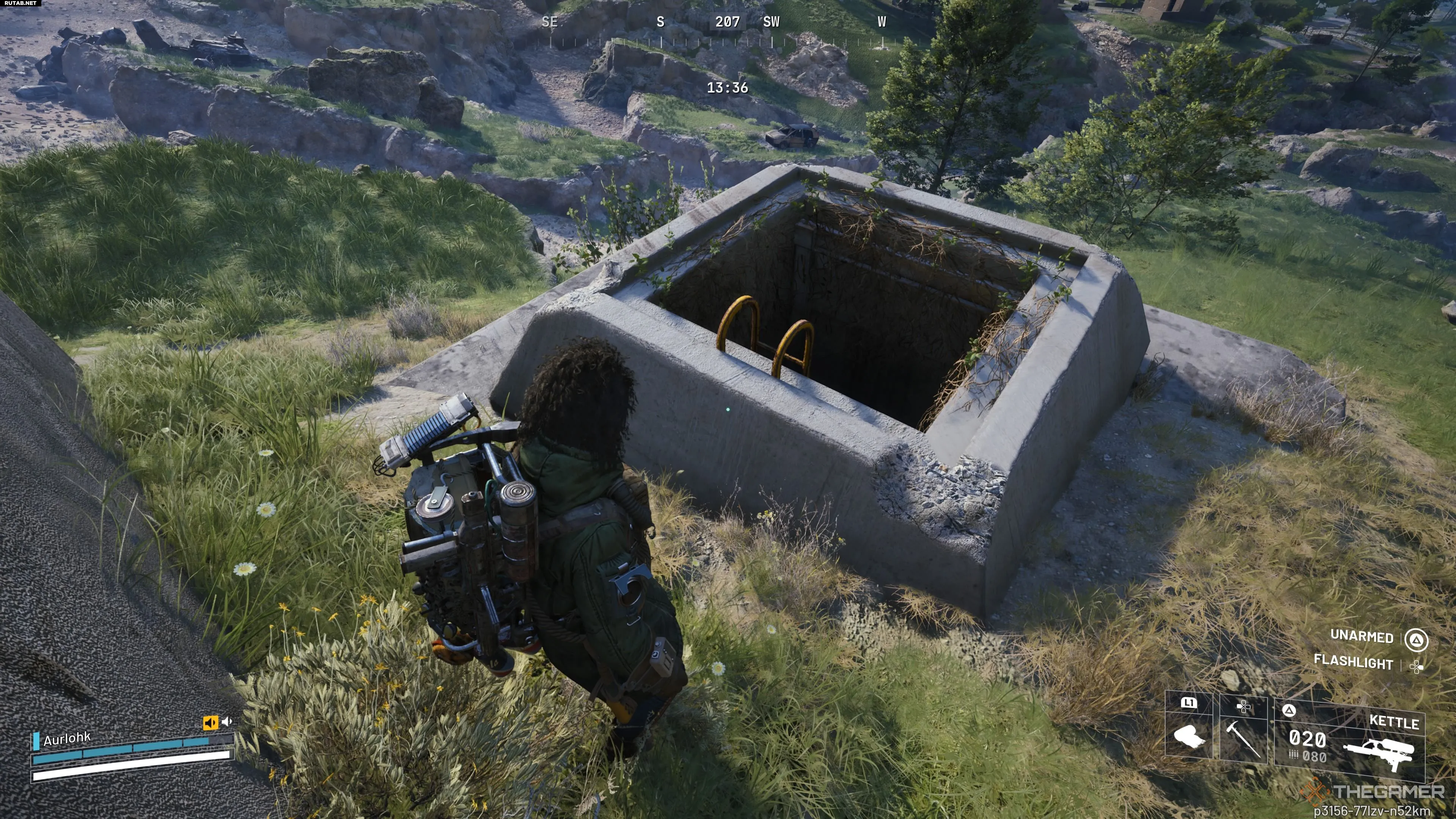 Рядом с лестницей, ведущей к башне ENELICA и воздуховоду, найдите небольшое квадратное отверстие с лестницей, уходящей под землю. Спуститесь по ней, чтобы попасть в технический бункер под регионом и выполнить первую задачу.