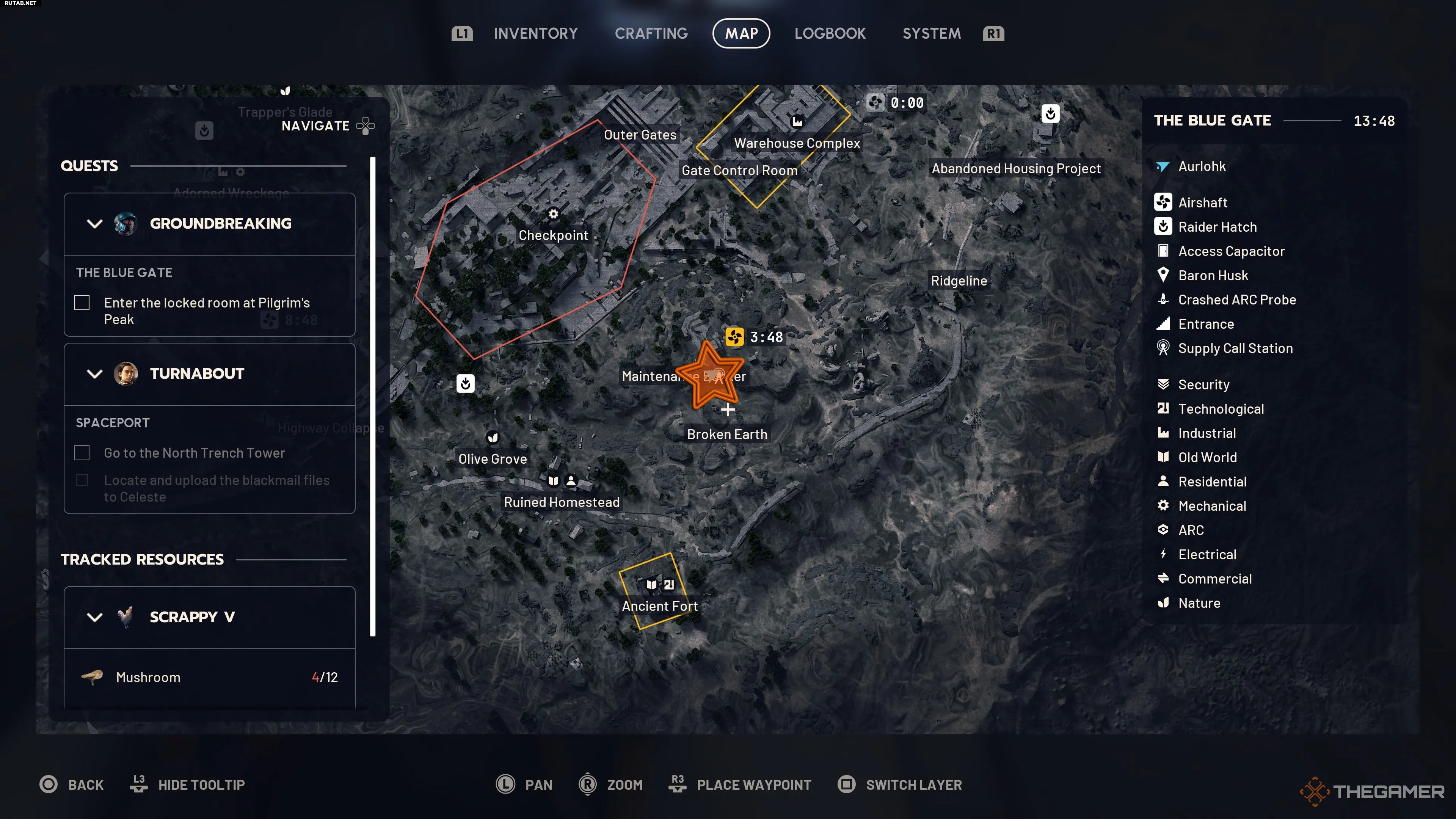 Теперь отправляйтесь к Голубым Вратам для выполнения последних трёх задач. Начните с технического бункера на восточной стороне карты, к югу от воздуховода «Обзор» (Overlook Airshaft).