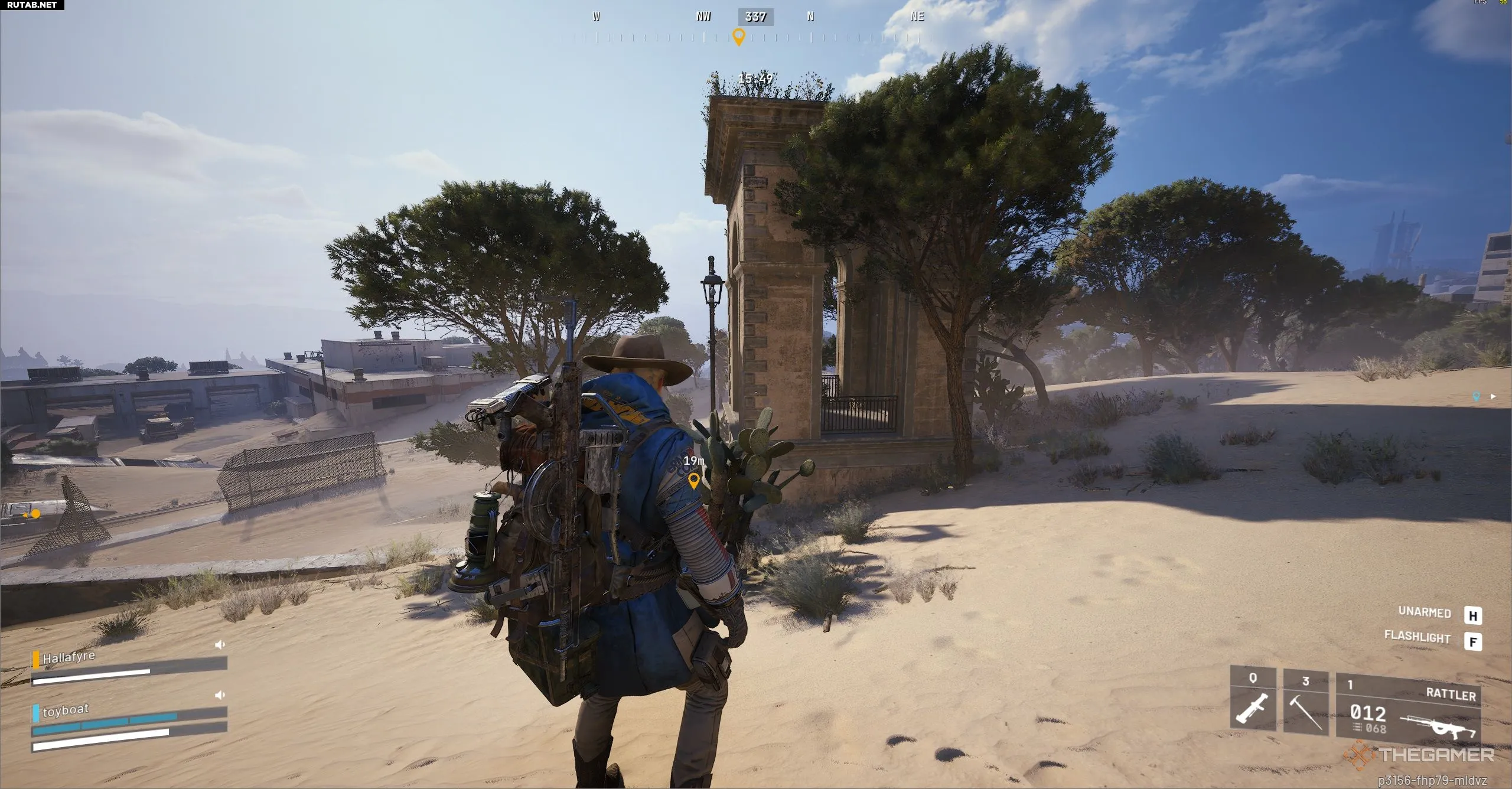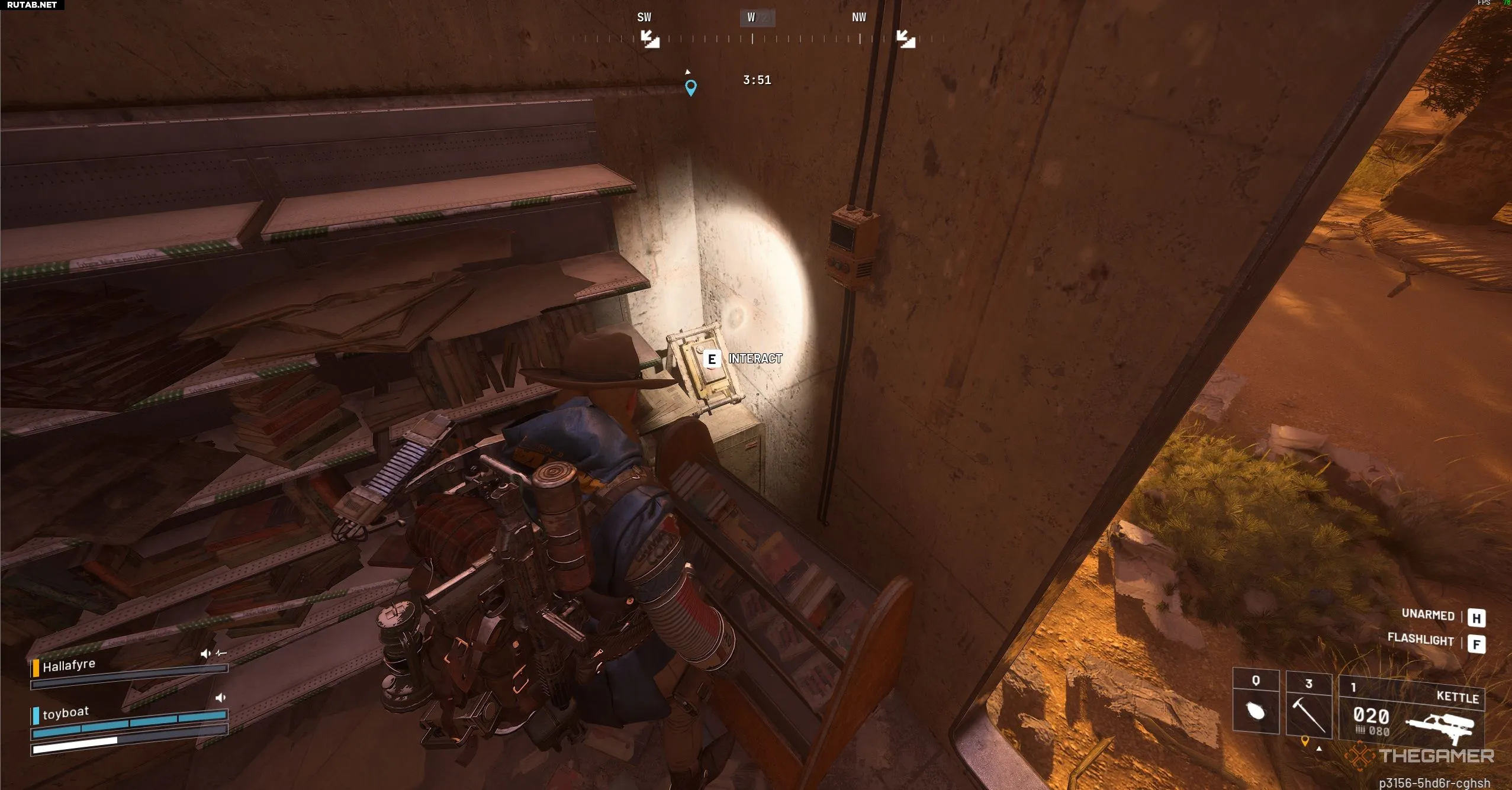 К югу от Депо Рейдеров в Погребённых владениях вы найдёте разрушенное здание, отмеченное жёлтым флагом, внутри которого стоит небольшой жёлтый автомобиль. Кнопка встроена в руины этой постройки, прямо рядом с маленьким жёлтым автомобилем.