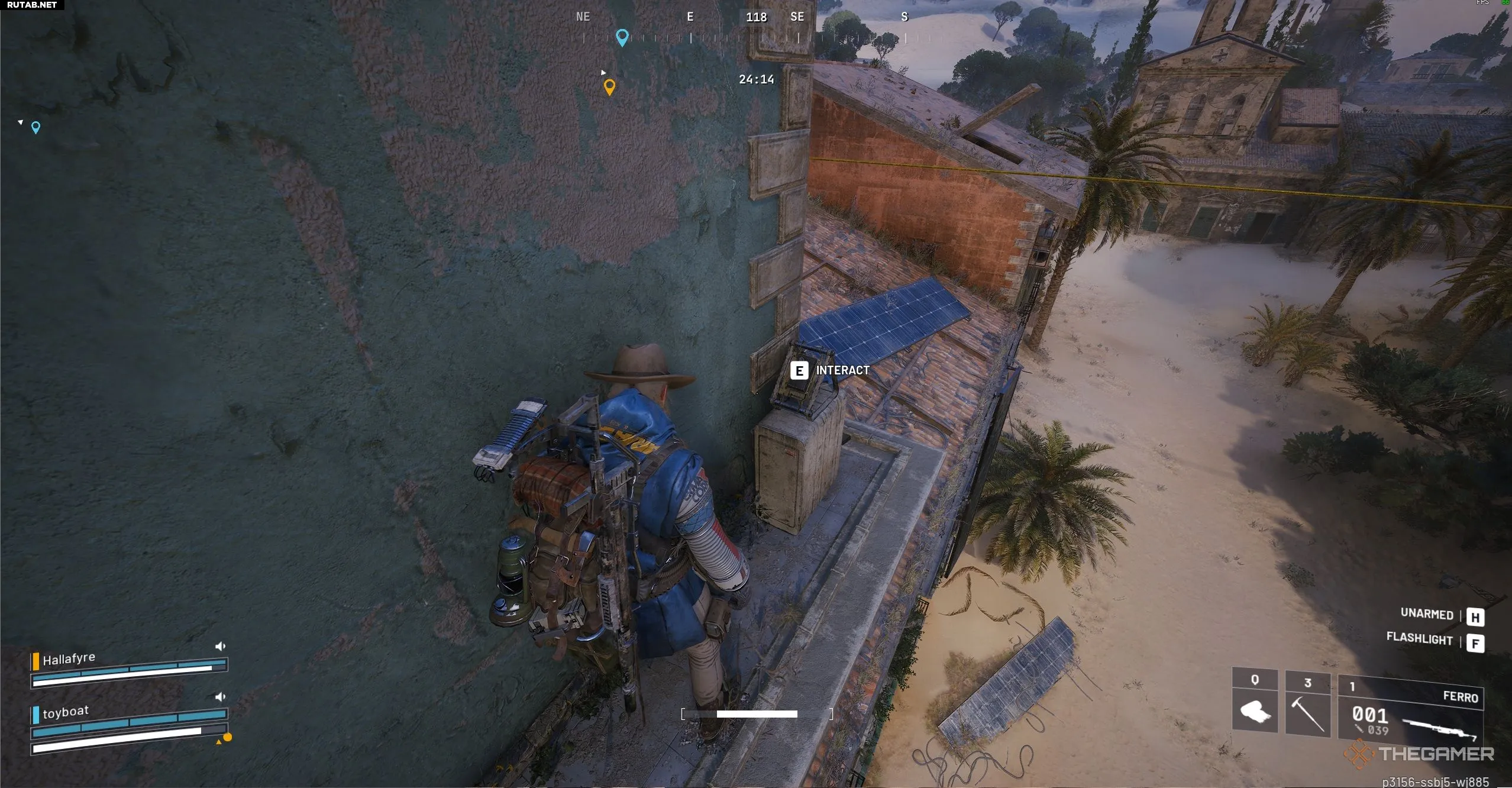 Заберитесь на крышу склада, используя жёлтую лестницу на западной стороне здания. Оказавшись наверху, двигайтесь к задней стене возле световых люков. Кнопка спрятана в тесном пространстве между двумя вентиляционными установками, её легко пропустить, если не проверять стены внимательно.