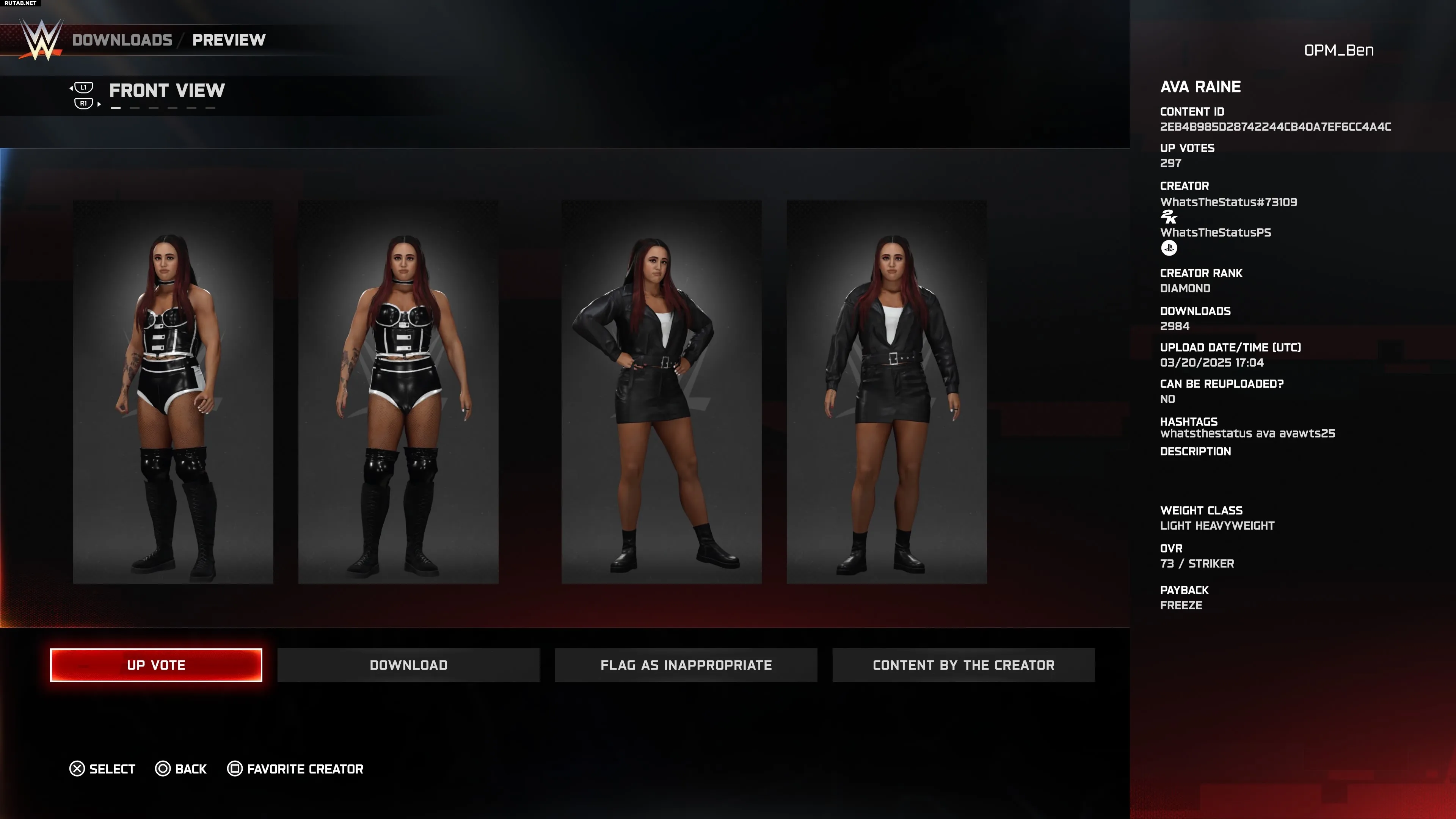 WhatsTheStatus— легенда в творческом сообществе, и среди его обязательных к скачиванию работ для WWE 2K25 есть Ава. Ранее выступавшая как рестлер в команде с Джо Гейси, последний год она исполняет роль генерального менеджера NXT и поэтому в игре этого года является NPC. Этот CAW меняет это, делая дочь Скалы играбельным персонажем.