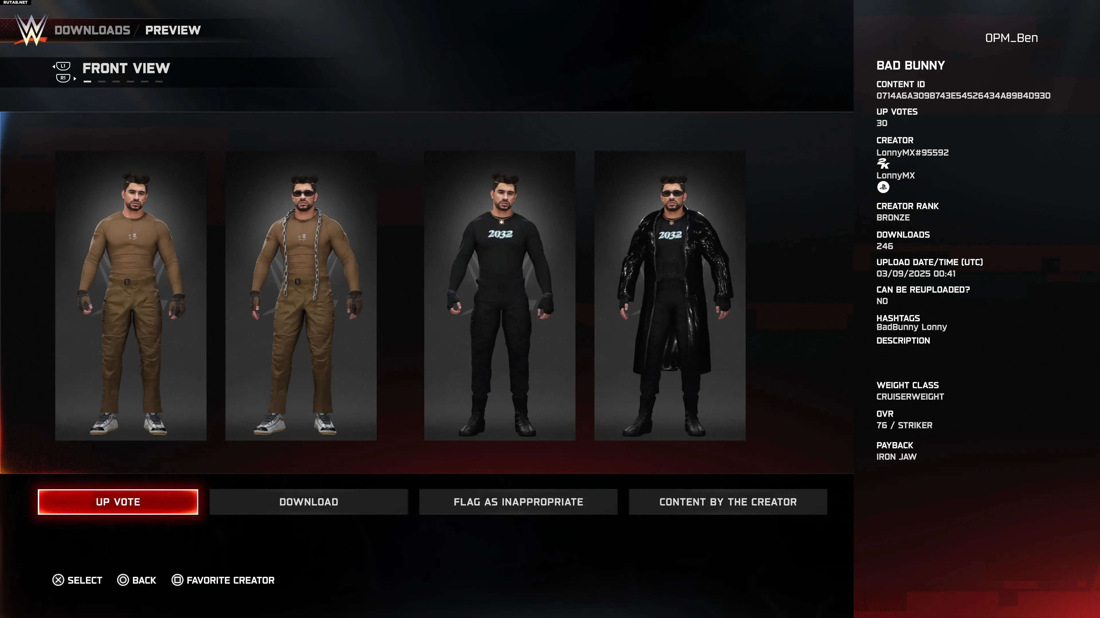 Пуэрто-риканская рэп-суперзвезда гостила в WWE с 2021 по 2024 год и стала неожиданным хитом в составе WWE 2K24. Однако он оказался одним из 23 рестлеров-мужчин, исключённых из WWE 2K25, наряду с такими именами, как Биг Босс Мэн, Шейн Макмэн и Тед Дибиази. Верните Банни в игру с помощью этого творения от LonnyMX.