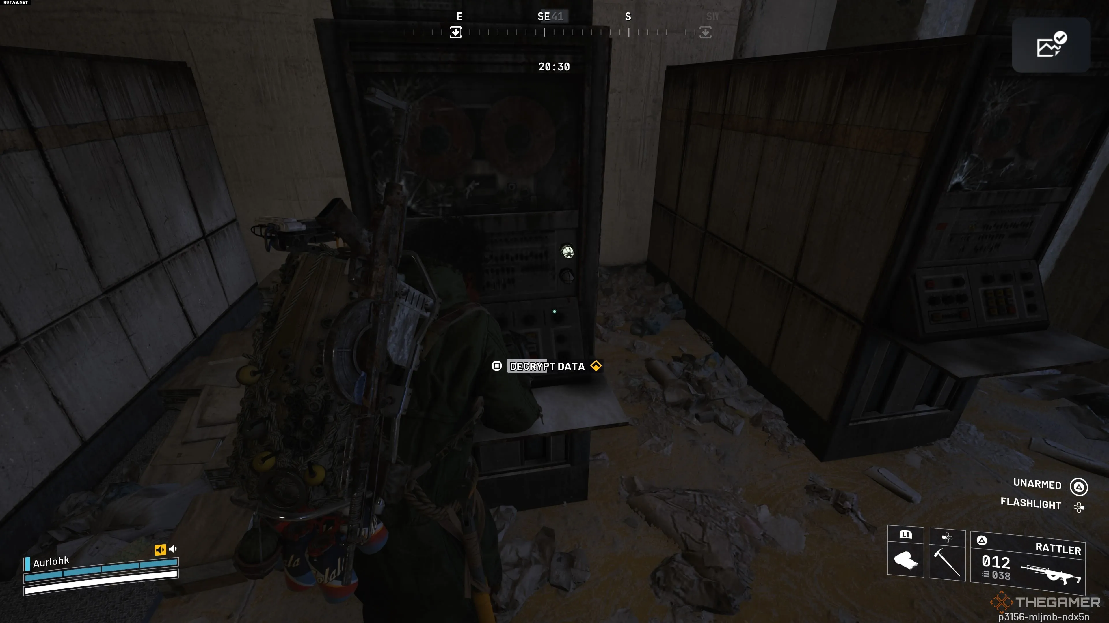 Подойдите к консоли, чтобы получить подсказку о расшифровке данных и выполнить первую цель задания, но после неудачи вам придётся отправиться в другое место.