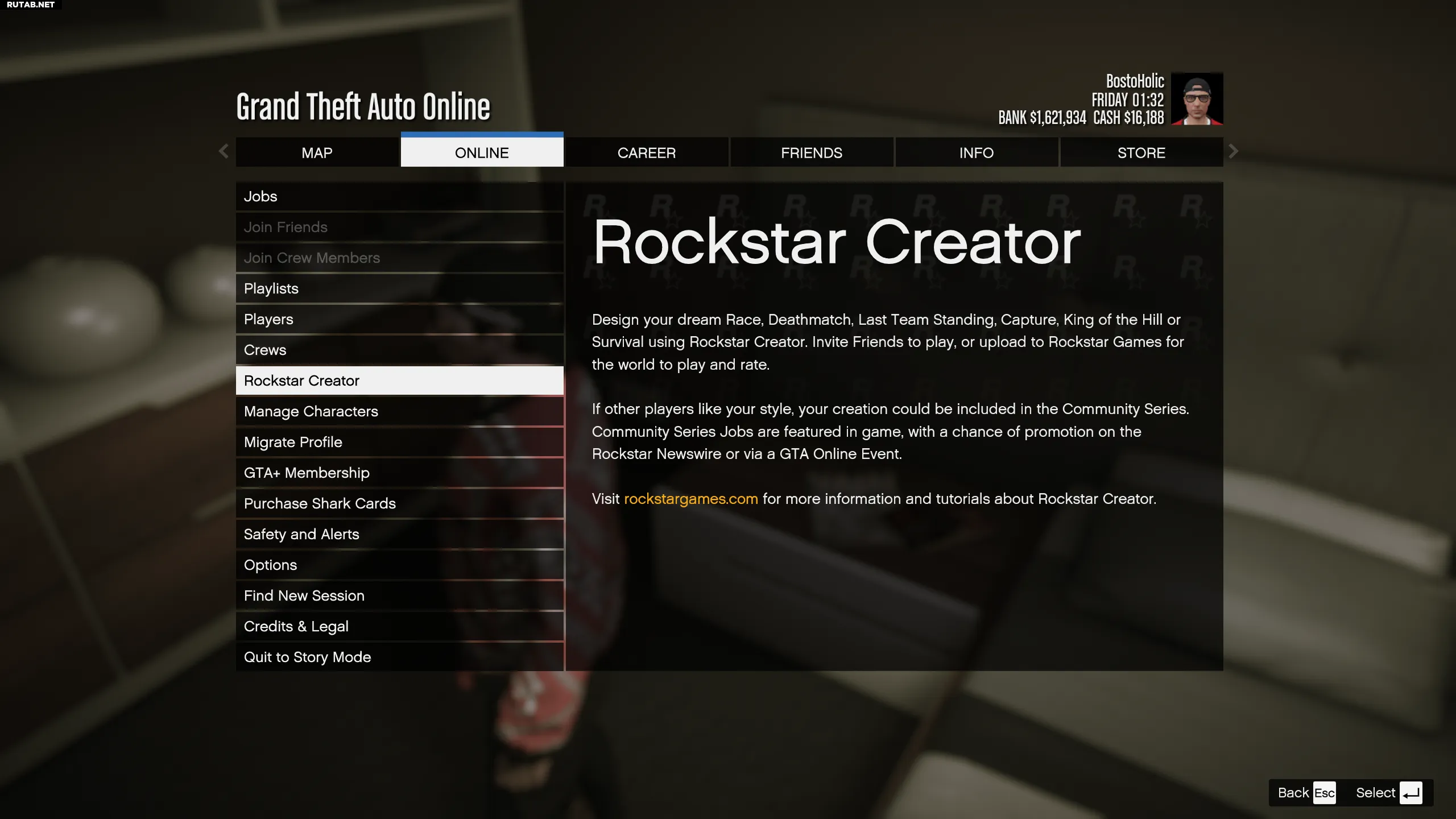 - Перейдите во вкладку «Online», выберите «Rockstar Creator», а затем завершите текущую игровую сессию.