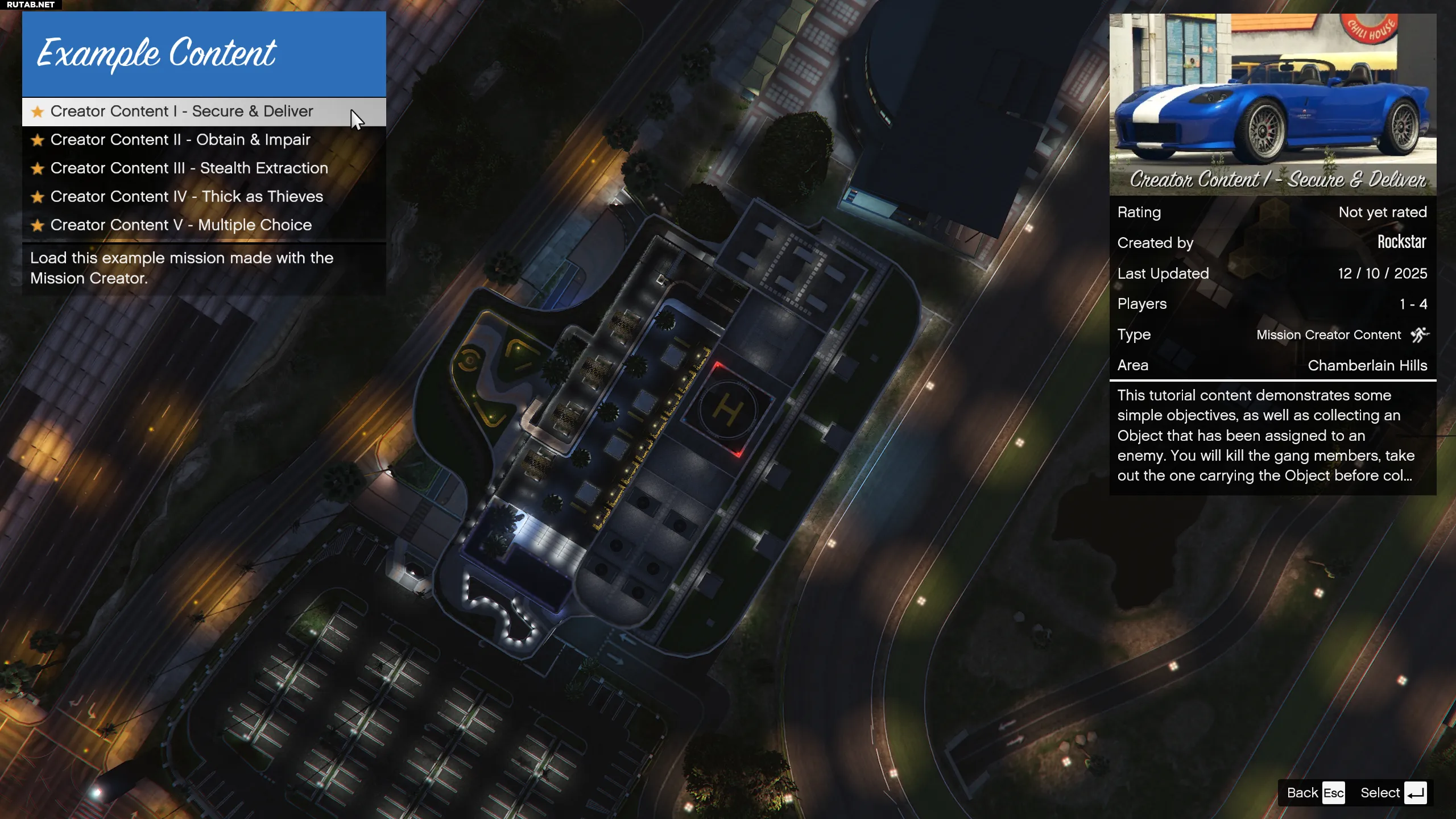 - Здесь вы найдете пять примеров миссий, созданных Rockstar. Пройдите их, чтобы понять механики.