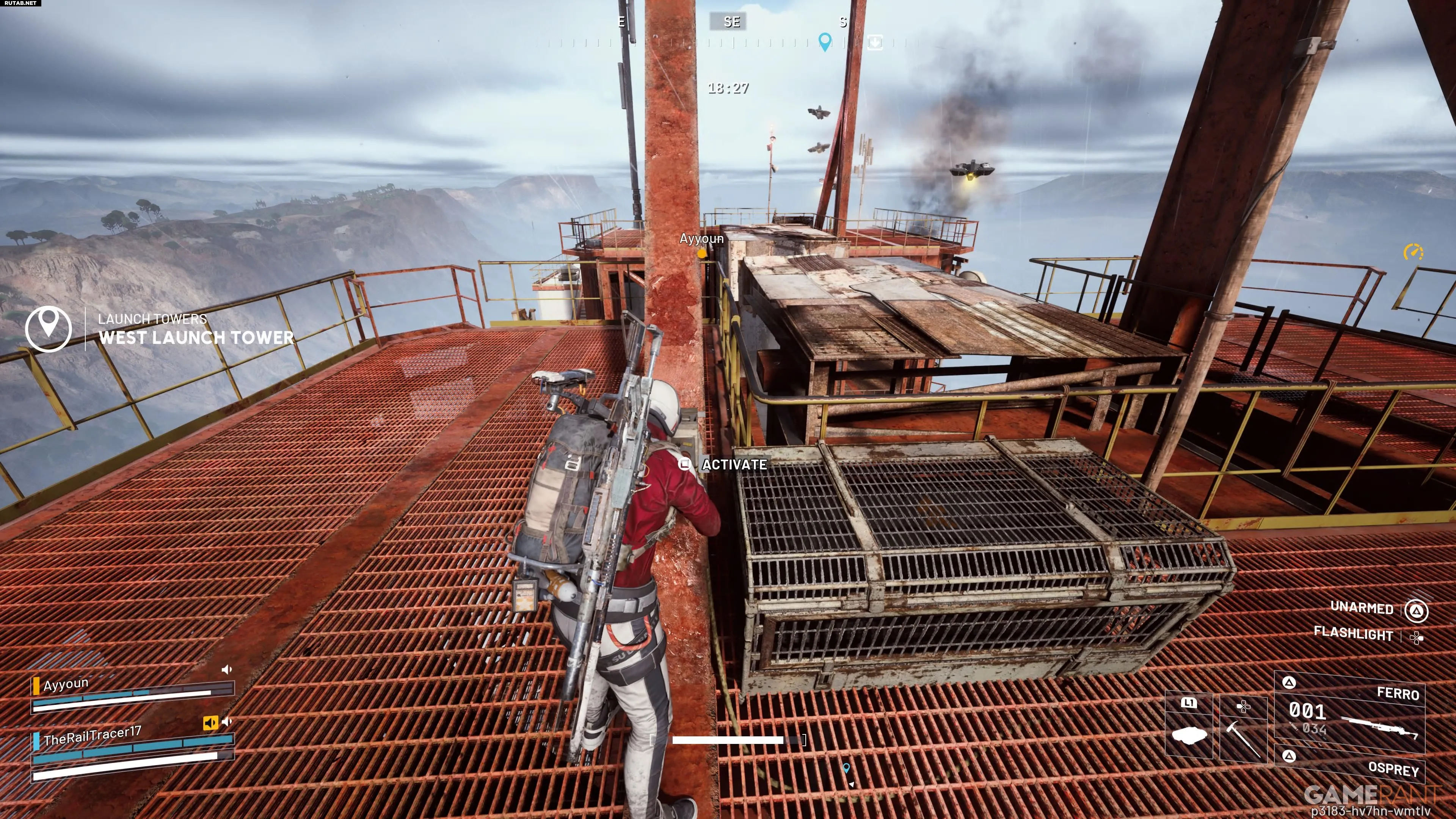 Там вас могут поджидать ещё несколько роботов. После их ликвидации поднимитесь по ступеням, чтобы найти запертый контейнер с переключателем рядом. Активация переключателя вызовет громкий звуковой сигнал, который привлечёт летающих роботов ARC, в том числе и «Ракетчика».