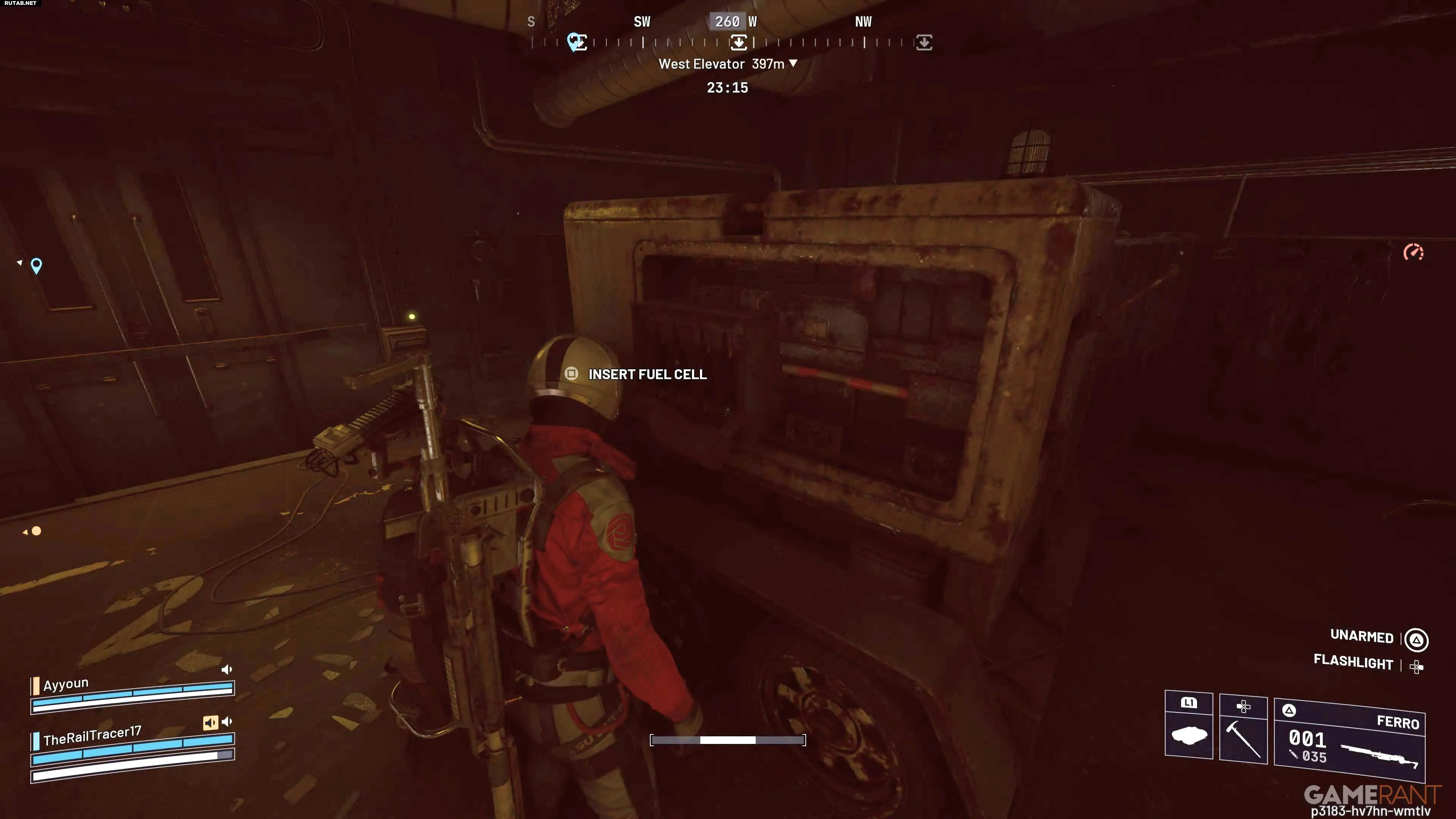 Местоположение топливного элемента случайно, но он всегда находится в непосредственной близости от башен. Вам придётся выйти наружу и поискать его. Это небольшой переносимый предмет, который замедляет движение и не позволяет бежать. Будьте осторожны: наземные и летающие роботы ARC могут создать вам проблемы.