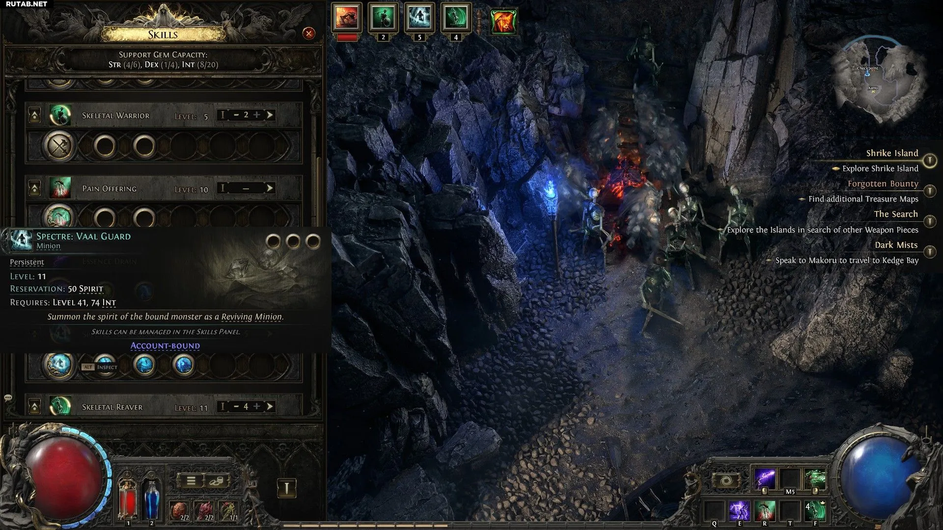 В основном вам нужно накапливать интеллект, чтобы повышать уровень камней умений, но не забывайте брать несколько узлов с силой и ловкостью для экипировки всех необходимых камней поддержки.