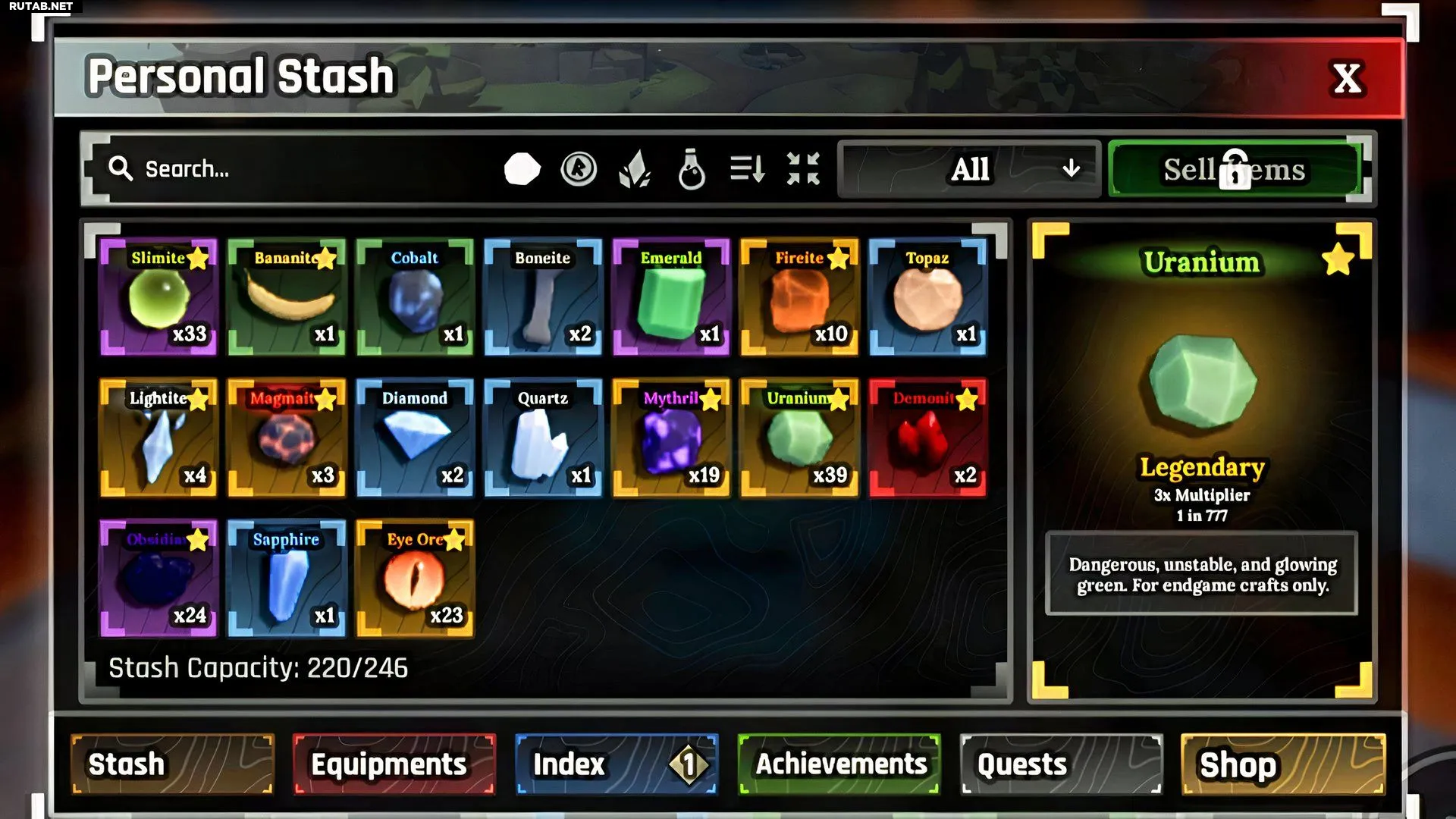 Также уран можно использовать для создания другого снаряжения (например, шлема и нагрудника самурая) или оружия. Его можно продать Жадному Сею по 66 золотых за штуку.