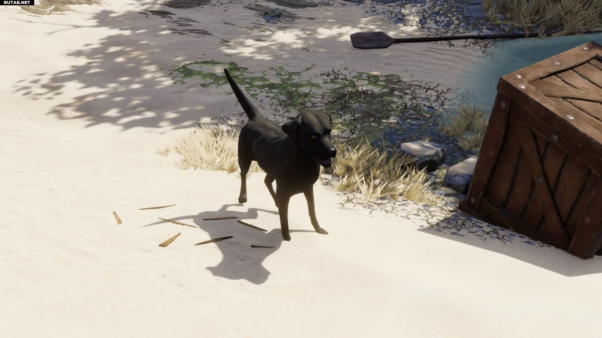 Бадди побежит к небольшому пруду, выкопает и оставит вам «Ключ Бадди». Подберите его и поговорите с псом снова. Он расскажет, что ключ обронил магистр в белых одеждах, который увел его подругу Эмми. Это запустит квест «Найти Эмми».