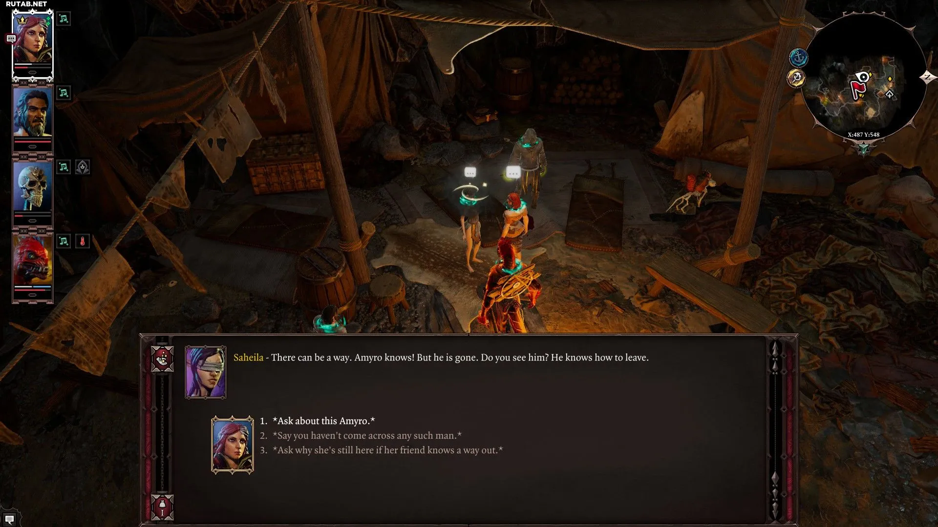 Найдите вход в пещеру в гетто Форт-Джой. Внутри у костра вы встретите эльфийку Сахелию. Поговорите с ней о побеге из крепости и расспросите об Амиро, чтобы получить задание.