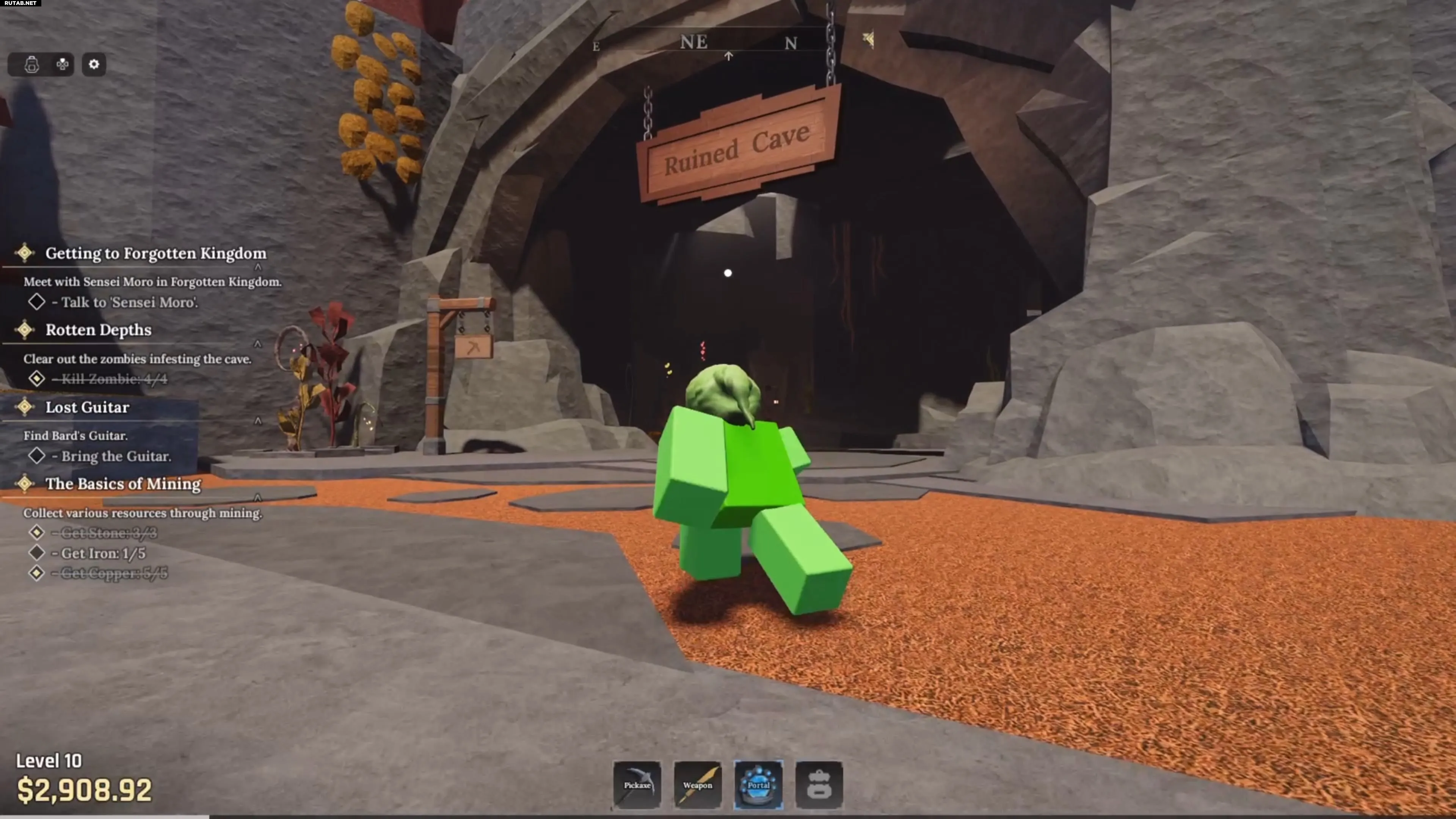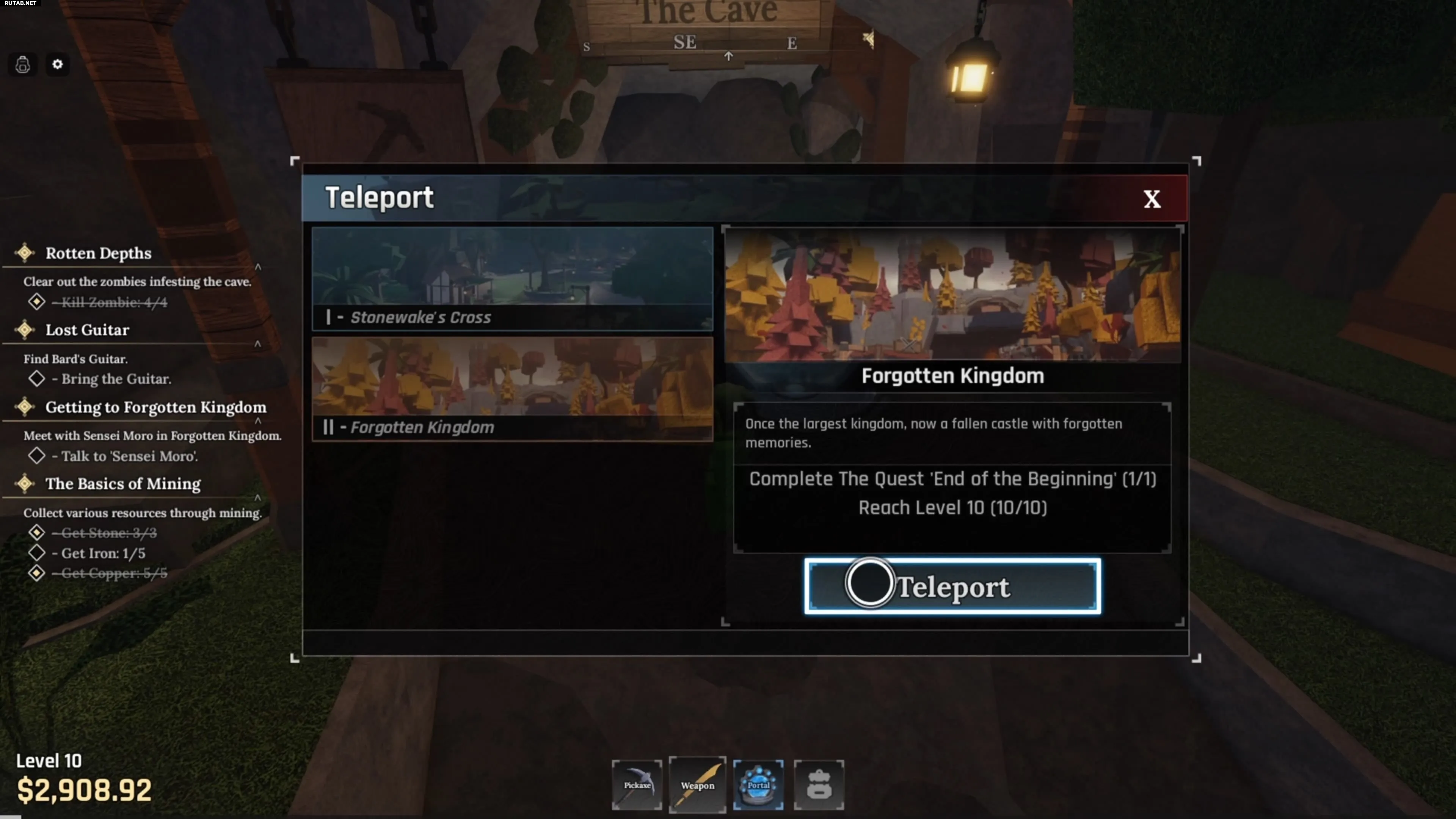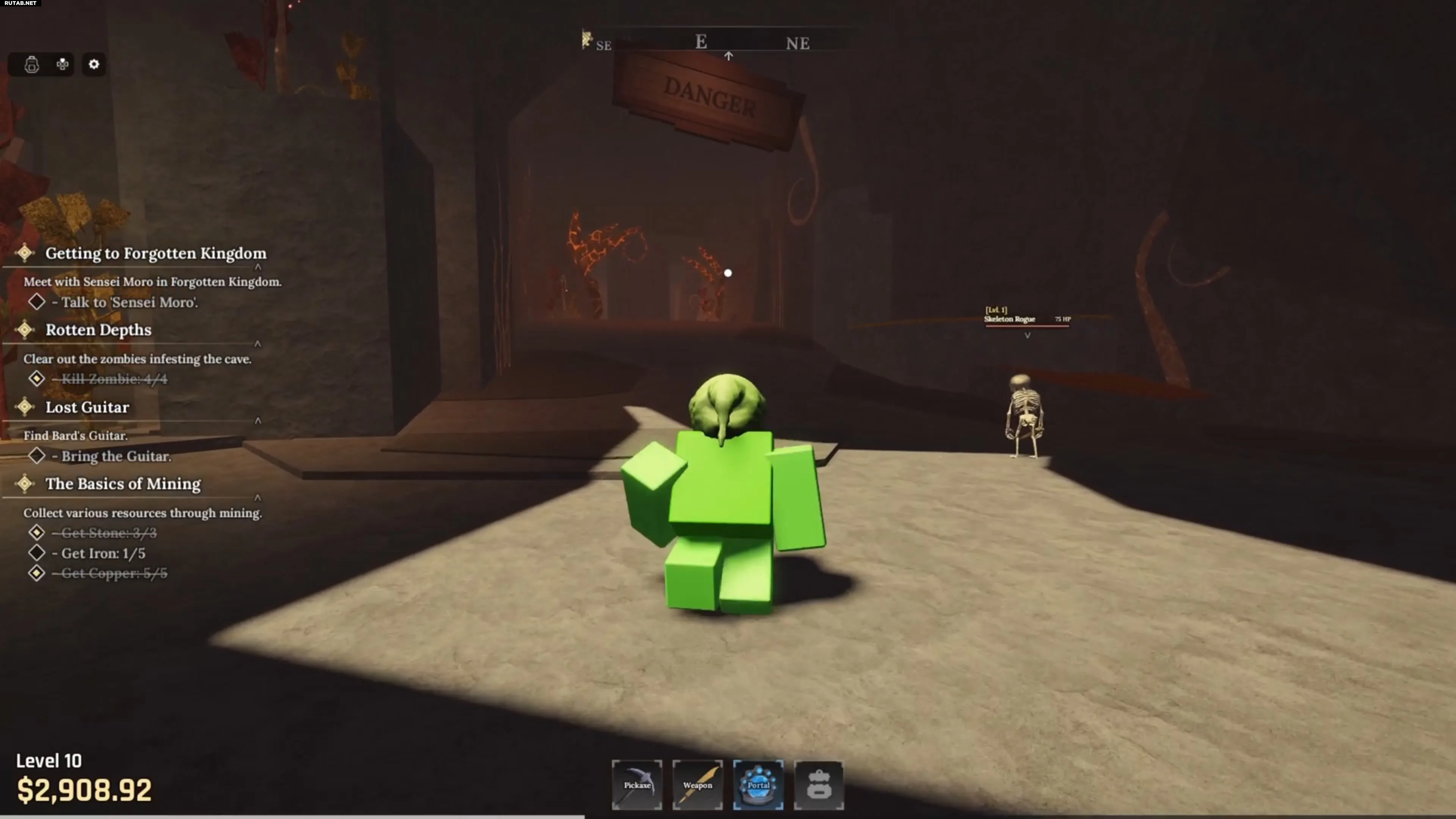 В самой зоне Забытого Королевства найдите Руинированную Пещеру (Ruined Cave). Внутри нее, прижимаясь к правой стене, ищите вход в более глубокую пещеру, отмеченный знаком «ОПАСНО» (DANGER).