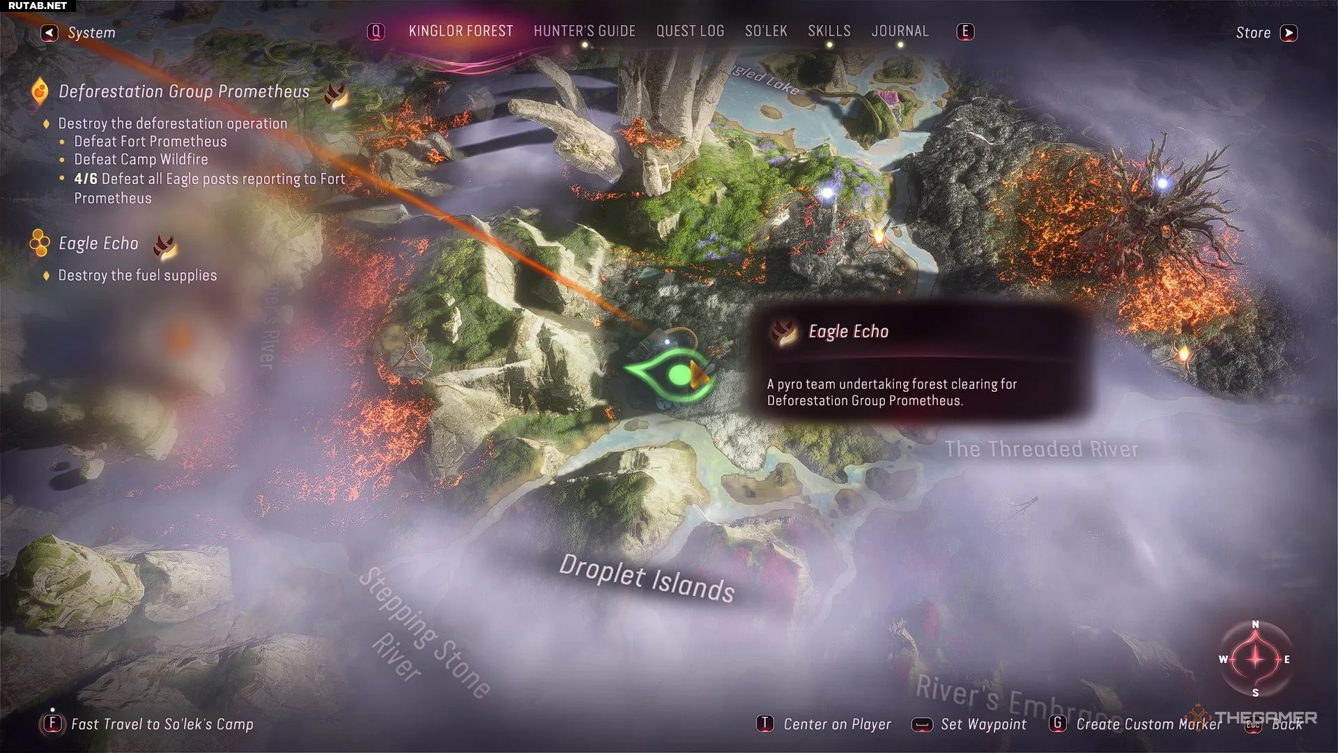 В Лесу Кинглор, недалеко от Теневых Лесов, вы встретите множество построек КДР. Это западный регион Леса Кинглор, который на карте затянут дымом и пеплом. По мере очистки этих лагерей карта будет становиться чище, а вы откроете новые точки быстрого перемещения.