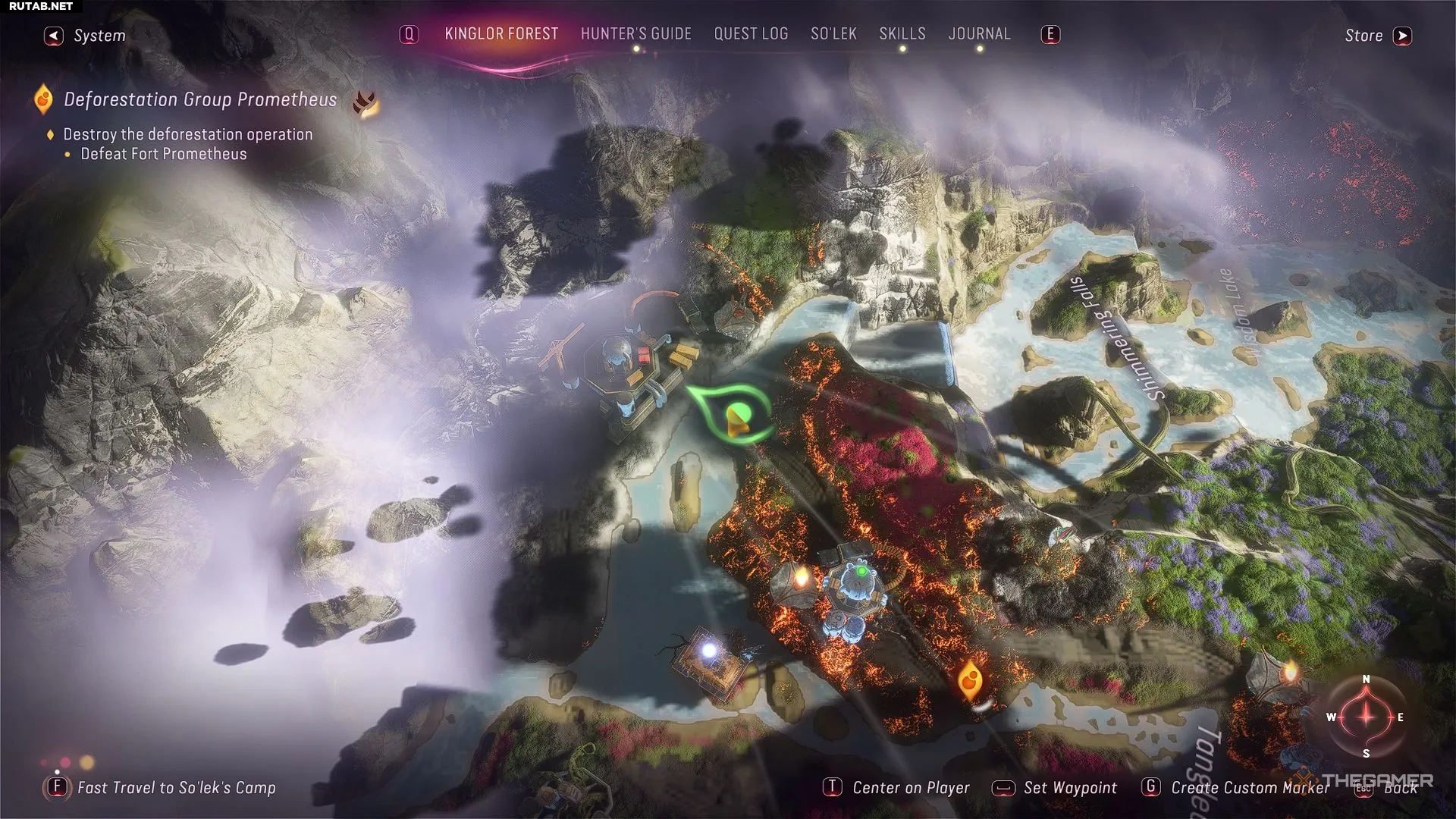 К северу от лагеря «Лесной Пожар», дальше всех остальных лагерей, находится печально известный форт «Прометей». Это первая крупная база, с которой вы столкнётесь, но она работает так же, как и другие в игре. Слушайте указания Прии и используйте чувства На’ви, чтобы находить цели.