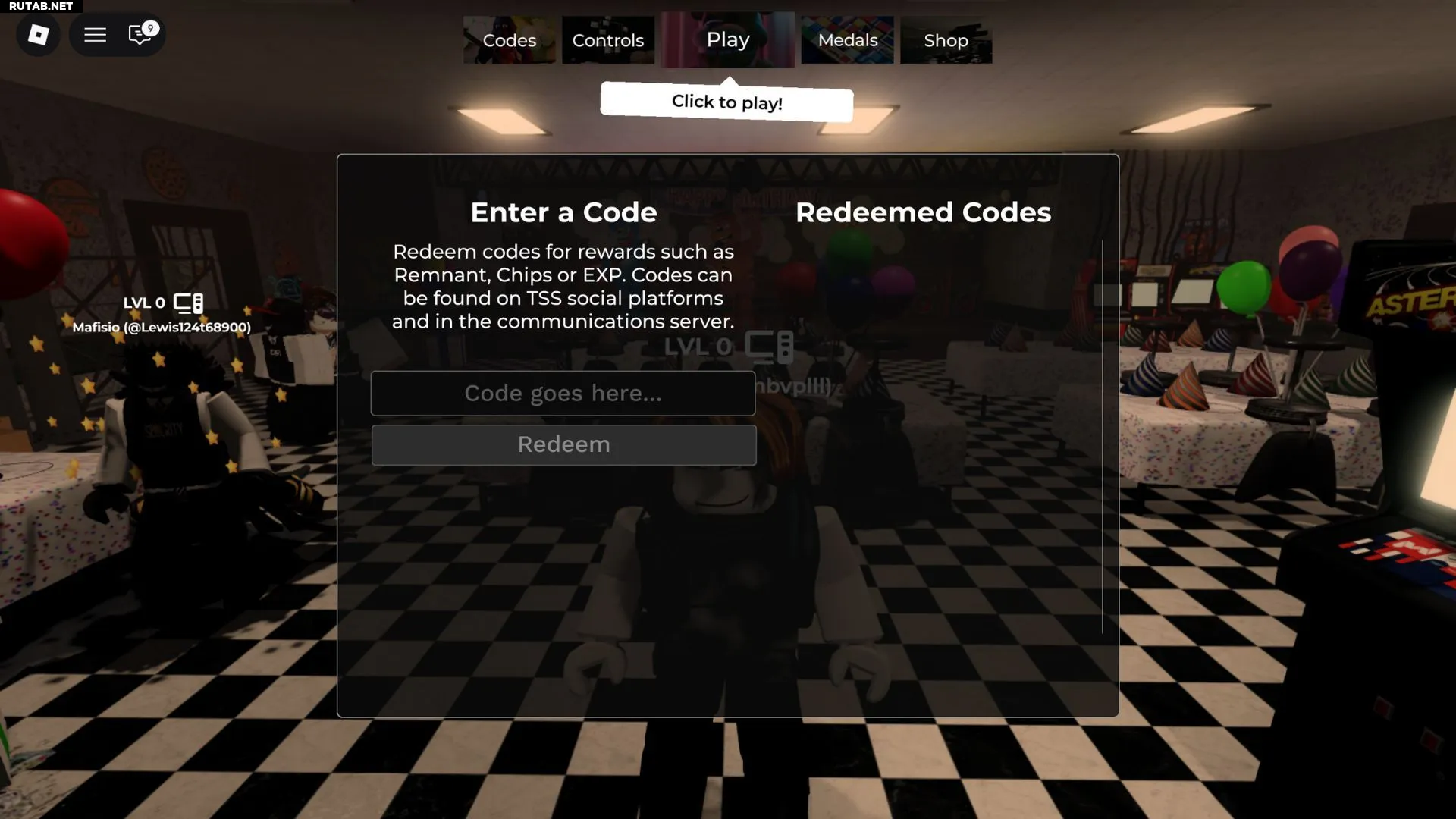 - В главном лобби нажмите кнопку «Codes» (обычно она в верхней части экрана).