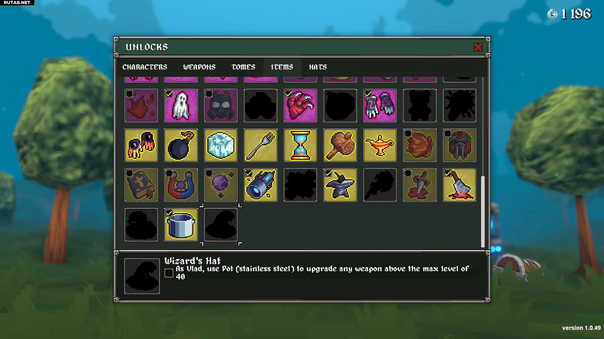- Квест на разблокировку Шляпы Волшебника: Играя за Влада, используйте Горшок (нержавеющая сталь), чтобы улучшить любое оружие выше максимального уровня 40.