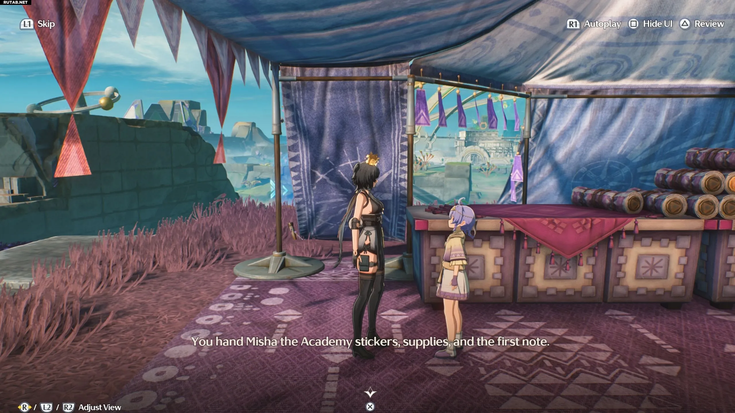 Направляйтесь к западу от Фьорда Корабля Рассвета в Ущелье Клыкоспира, чтобы найти группу палаток. Поднимитесь по лестнице наверх и найдите Мишу в одной из палаток. Поговорите с ней, чтобы получить квест. Ваша задача — найти пять лагерей и восемь наклеек, а затем вернуться к девочке.