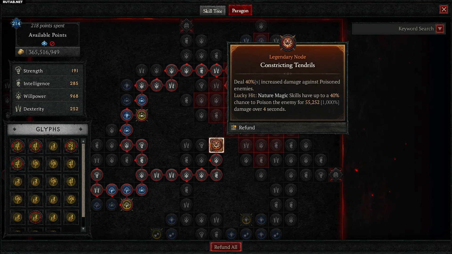 - Constricting Tendrils увеличивает ваш урон по отравленным врагам и даёт умениям природы шанс отравить врага при счастливом ударе.