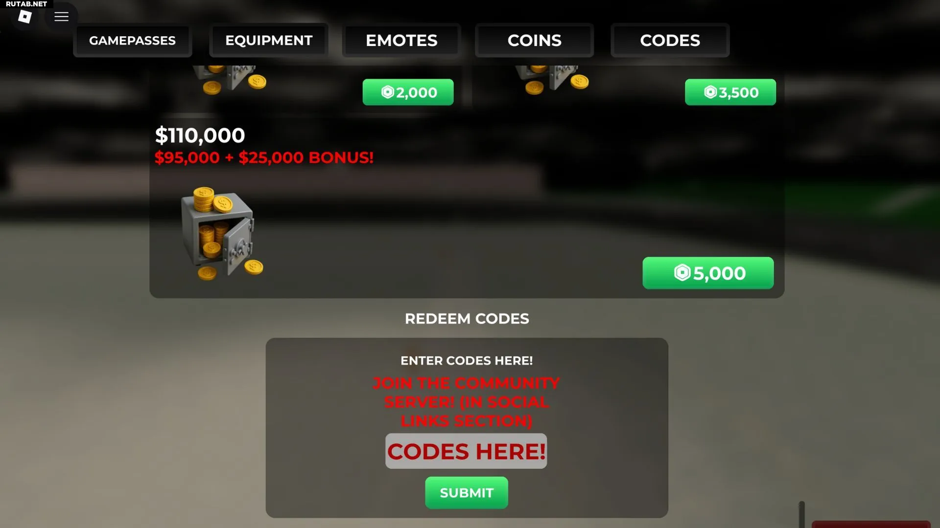 - Введите рабочий код в поле «Codes Here!» (точное совпадение).