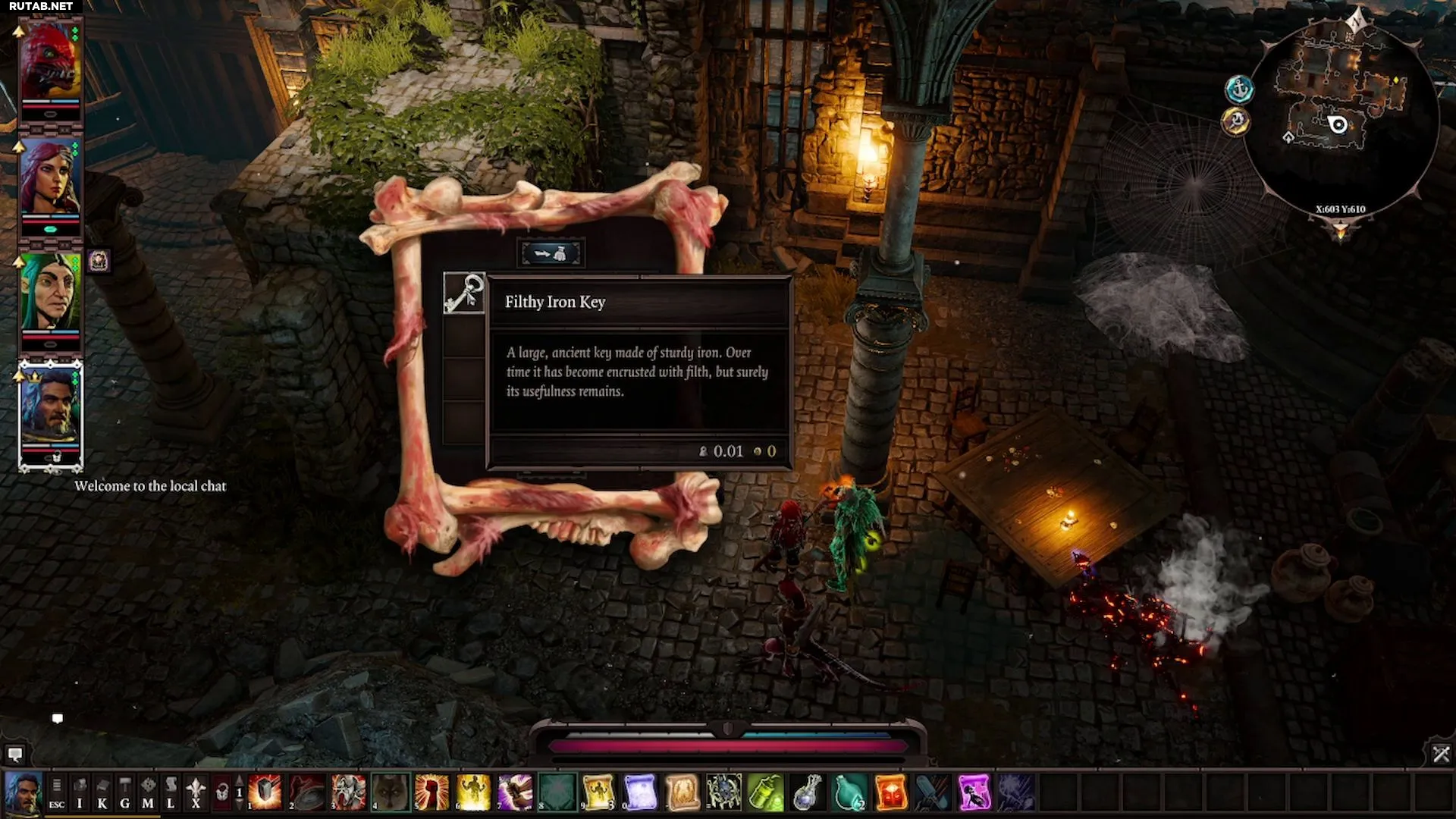 Внутри Башни Браккуса Рекса вы найдёте трёх нежить-некромантов, играющих в карты за столом. Чтобы получить Грязный железный ключ и открыть запертую дверь, нужно либо убедить их, либо победить.