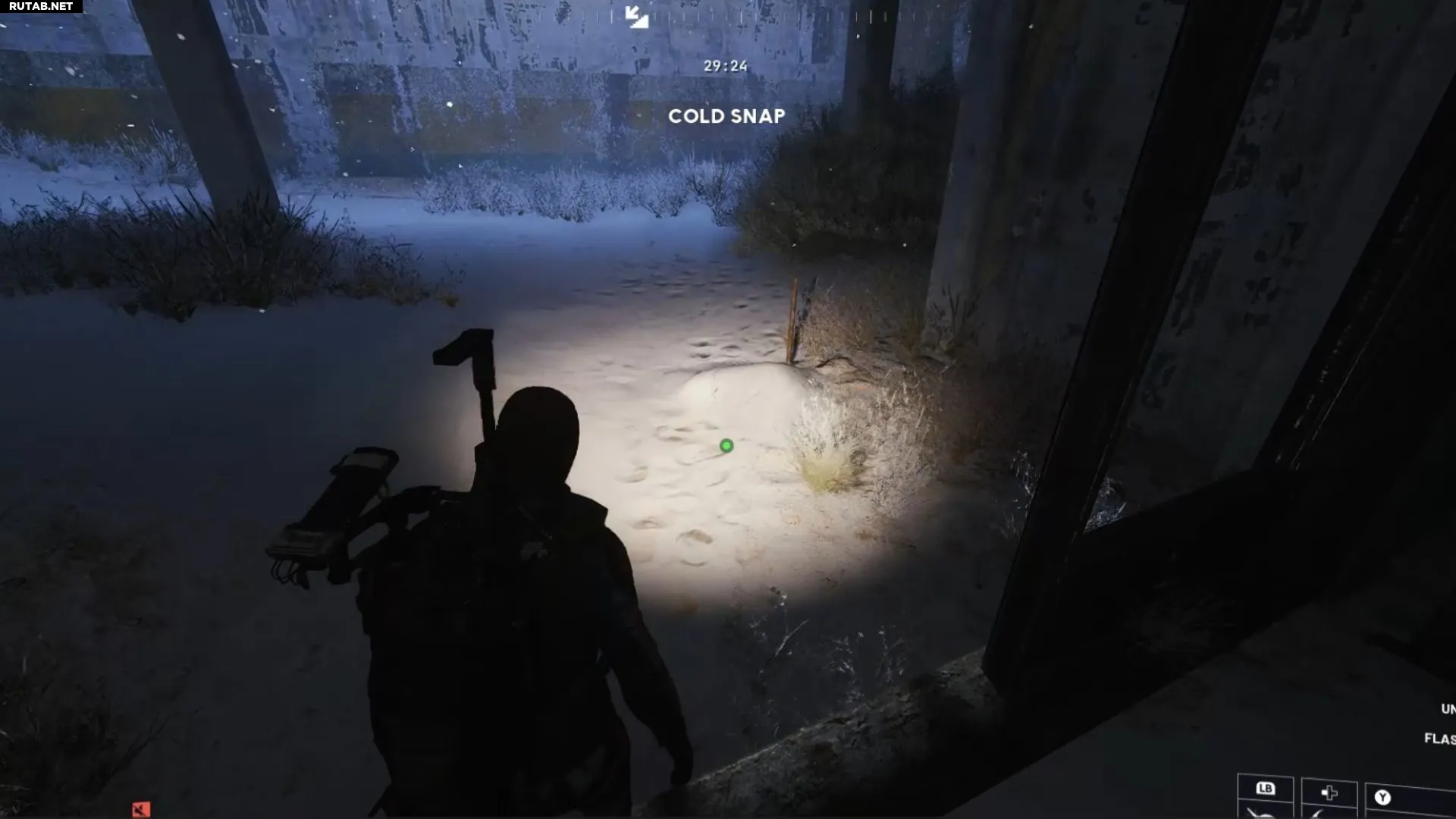 В условиях карты «Ледяной удар» ищите небольшие кучи снега, отмеченные палкой. Нажимая кнопку взаимодействия рядом с ними, вы получите один снежок. Сугроб восстанавливается, поэтому можно собрать много снежков с одного места. Соберите не менее 20 снежков и поместите их в карман быстрого слота. Лучше делать это рядом с укрытием, чтобы не погибнуть от обморожения.