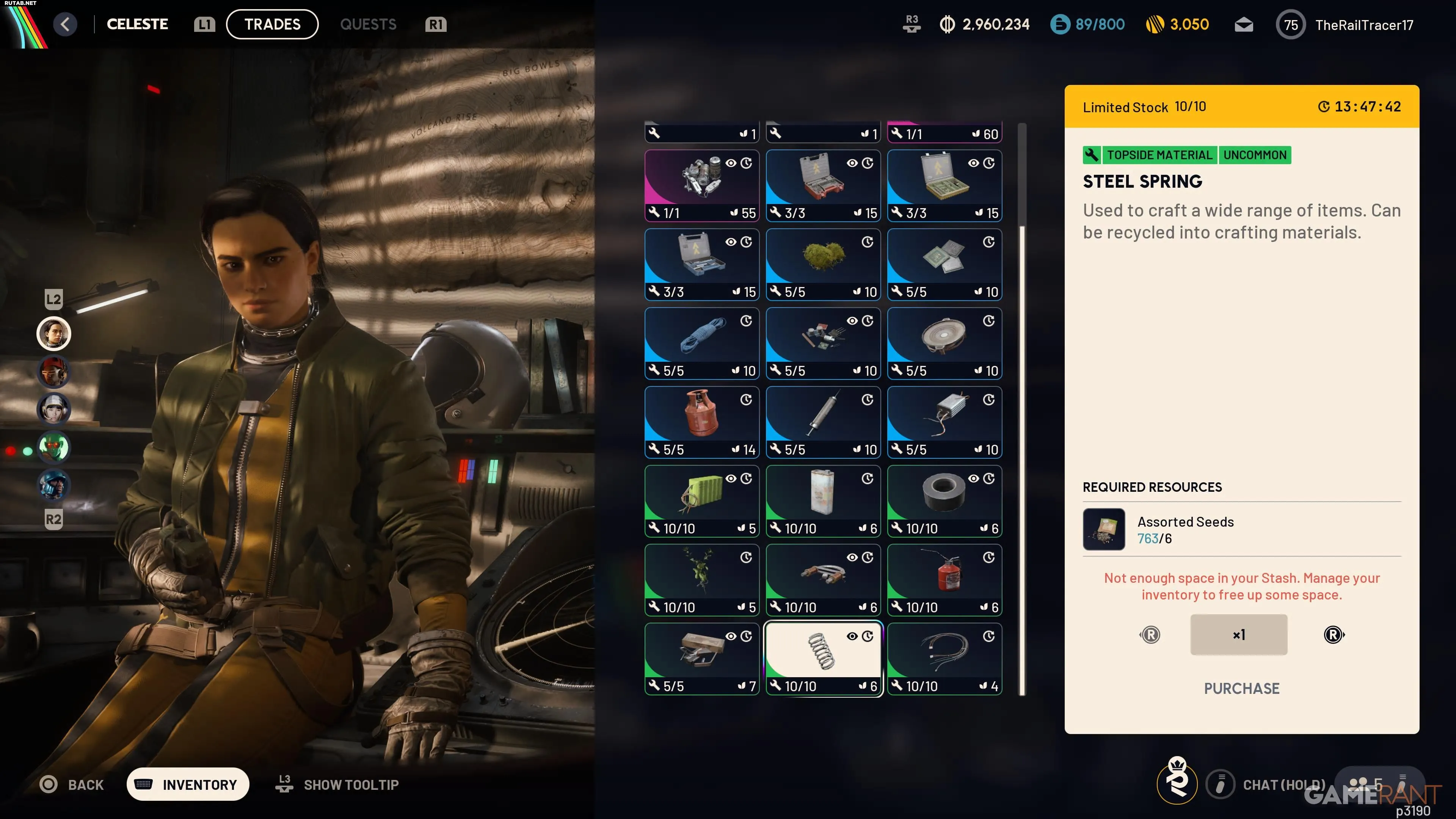 Самый простой способ — купить пружины у торговки Селесты во вкладке «Торговцы». Каждый день она продает по 10 пружин за 6 Семян каждую. Запас обновляется ежедневно. Семена можно получить у Скрэппи после вылазки или найти в Хранилище Семян на карте Stella Montis.