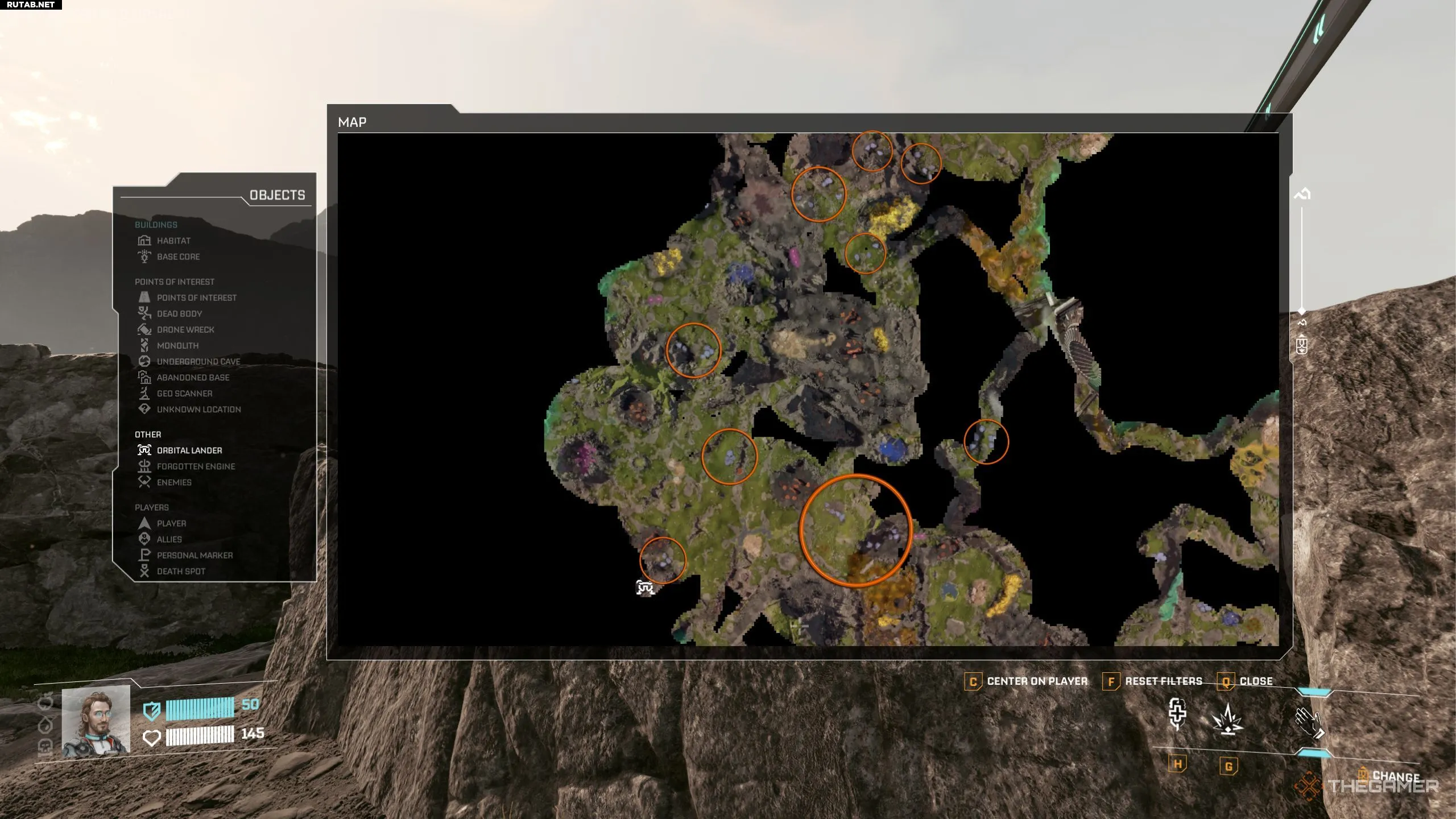 Эти жилы можно опознать по их каменистой структуре и серому цвету. Помимо стартовой зоны, вы легко найдёте их скопления к северу или северо-востоку от Орбитального посадочного модуля. На карте их можно идентифицировать по серым кругам или их группам.
