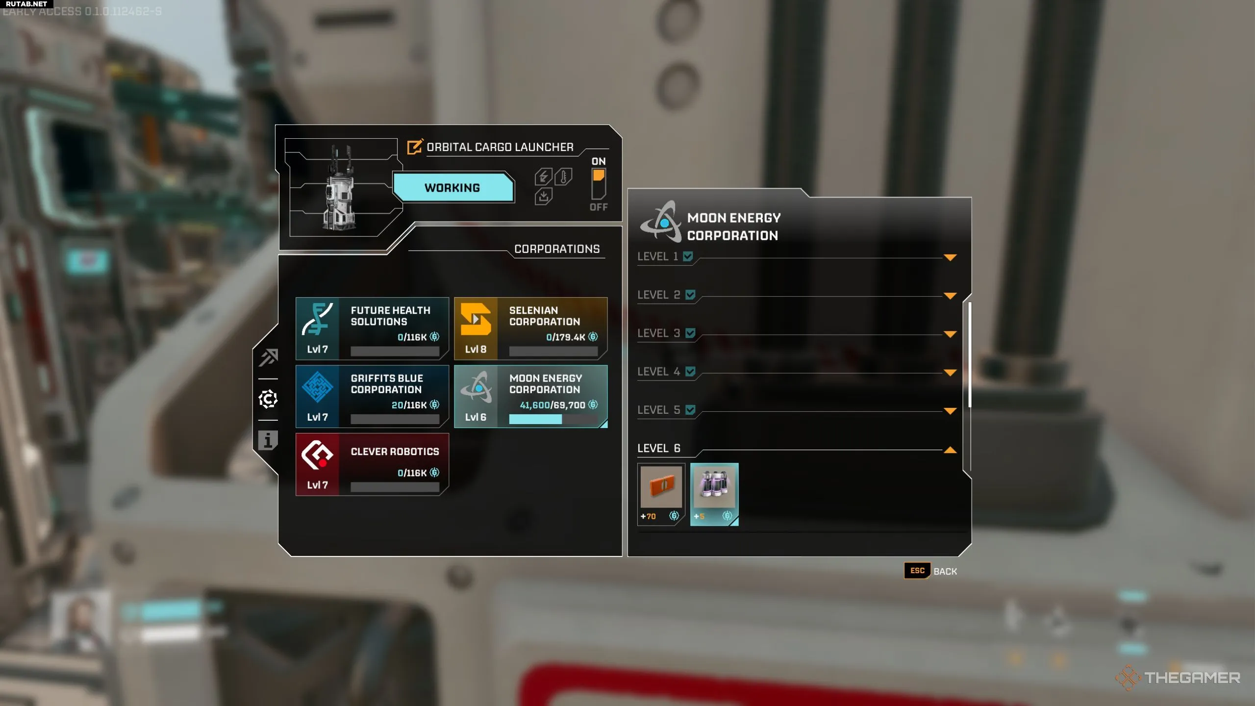 По завершении обучения вы заметите, что корпоративный терминал внутри вашего хаба разделён на пять различных корпораций. Эти же пять вариантов будут доступны при выборе рецепта в орбитальной грузовой пусковой установке. Лучший способ повысить доверие корпорации — отправлять правильные рецепты через эти установки. Для этого сначала произведите ресурсы, а затем доставьте их к пусковой установке по рельсам.
