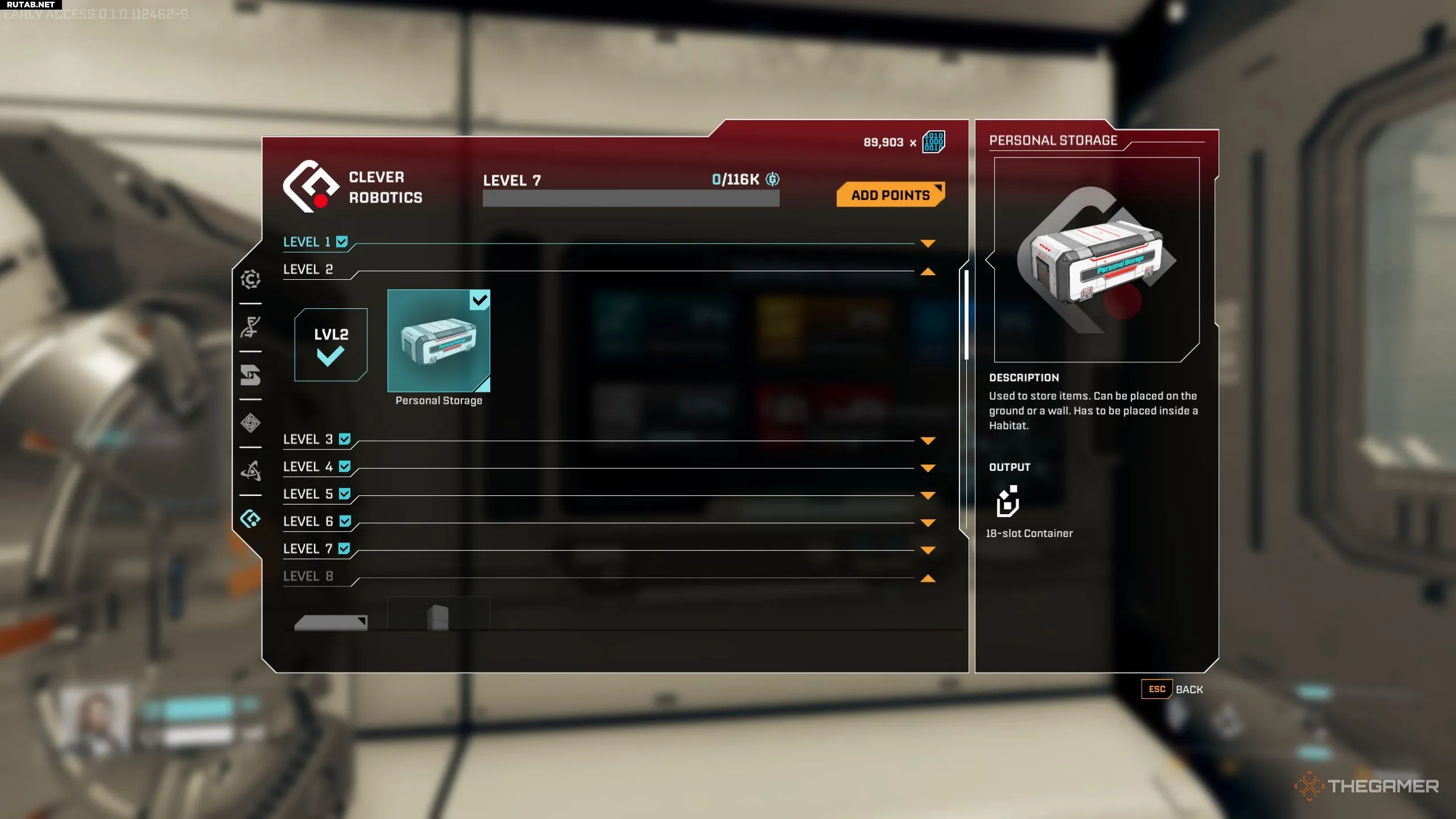 | 4 | Clever Robotics уровень 2 | Вы быстро обнаружите, что ваш инвентарь переполнен предметами, как только начнёте исследовать мир, и наличие места для их хранения внутри Хабитата с помощью Личного хранилища — отличное решение. |