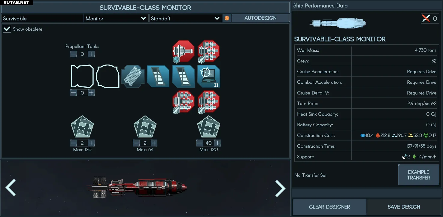 Хотя можно строить и более лёгкие мониторы, эта конструкция, вероятно, станет первой, которая позволит вступать в бой с крупными кораблями пришельцев без потерь.