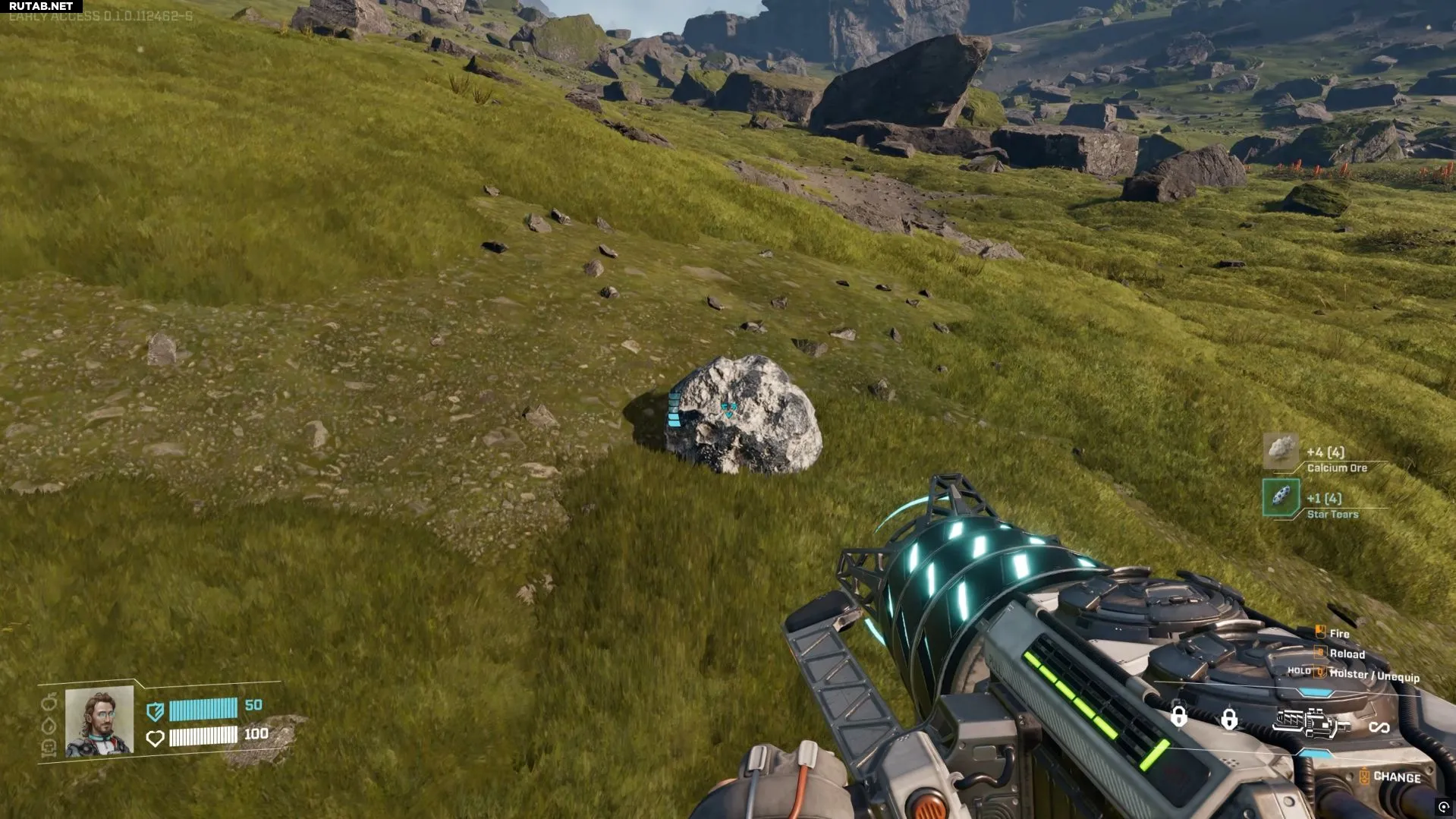 Это не единственный способ добычи. На поверхности Аркадии-7 также разбросаны небольшие белые каменные сферы. Их можно разбить с помощью вашего инструмента, наведясь и выстрелив.